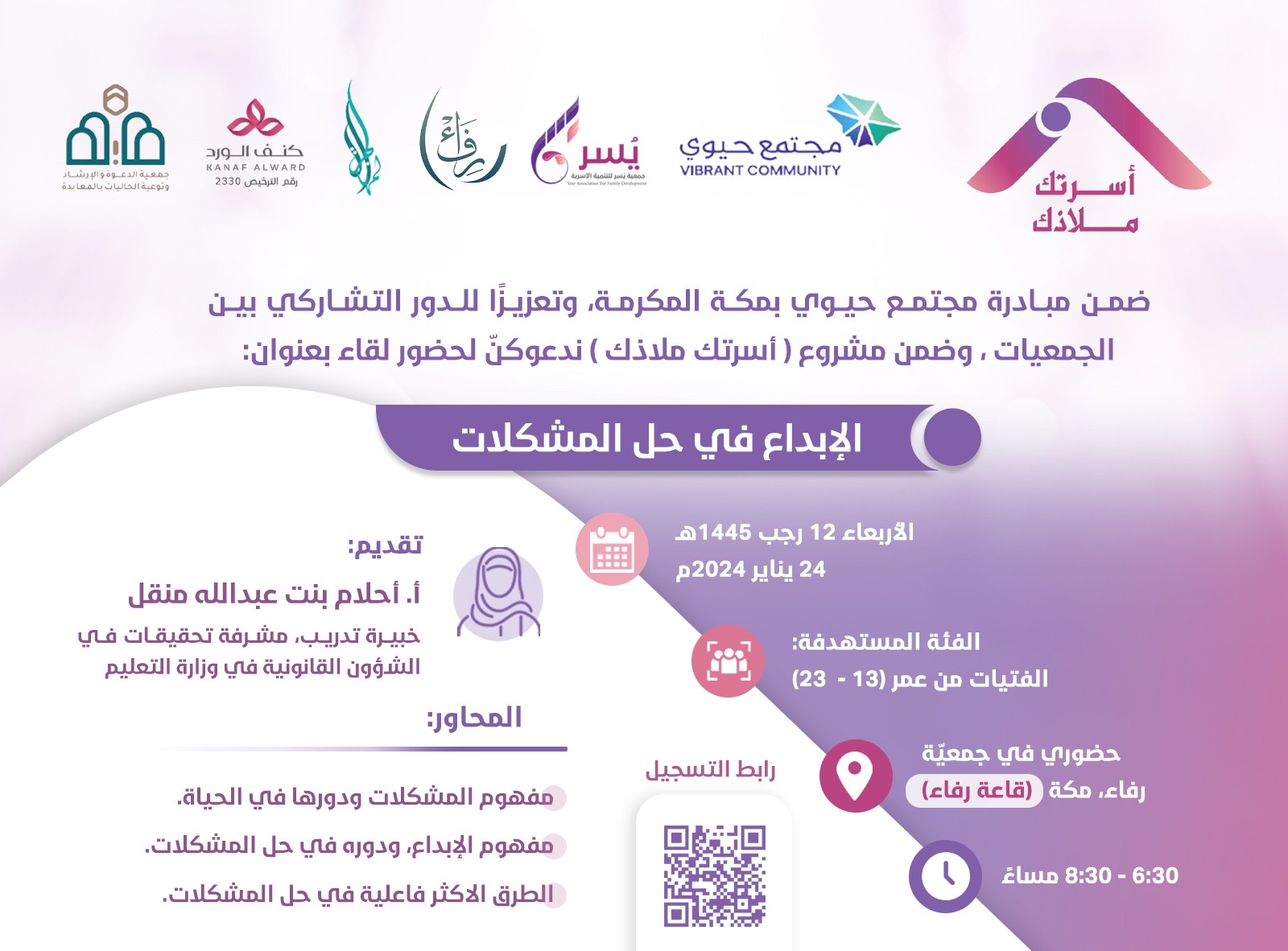 ضمن مبادرة مجتمع حيوي بمكة المكرمة، وتعزيزًا للدور التشاركي بين الجمعيات، وضمن مشروع أسرتك ملاذك