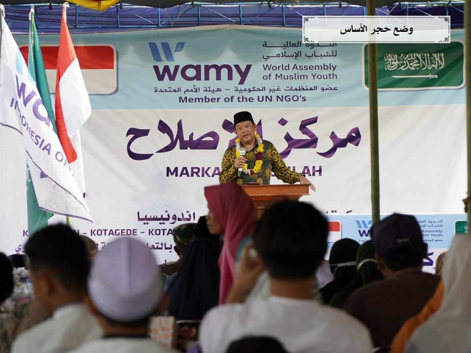 جاء ذلك في الاحتفال الكبير الذي نظمه مكتب الندوة العالمية للشباب الإسلامي في إندونيسيا بمناسبة وضع حجر الأساس لمركز تنموي جديد في منطقة “يوغياكرتا” والتي تبعد عن العاصمة جاكرتا بـ (569) كم، حيث يخدم المركز أكثر من (200) أسرة من سكان المنطقة ويضم مسجدًا وبئرًا ومدرسة تعليمية ومستوصفًا ودارًا للأيتام ووقفًا خيريًا.