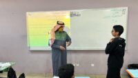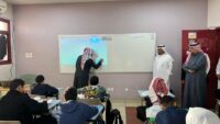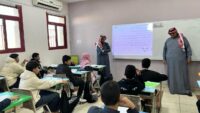 ثم اطلع ، المدير العام للتعليم على سير العمل بالمدرسة وزار بعض الفصول الدراسية،وشارك الطلاب الدروس ، والتقى بمدير المدرسة والمعلمين، مشيداً بالجهود المبذولة راجياً للجميع مزيداً من التوفيق والسداد