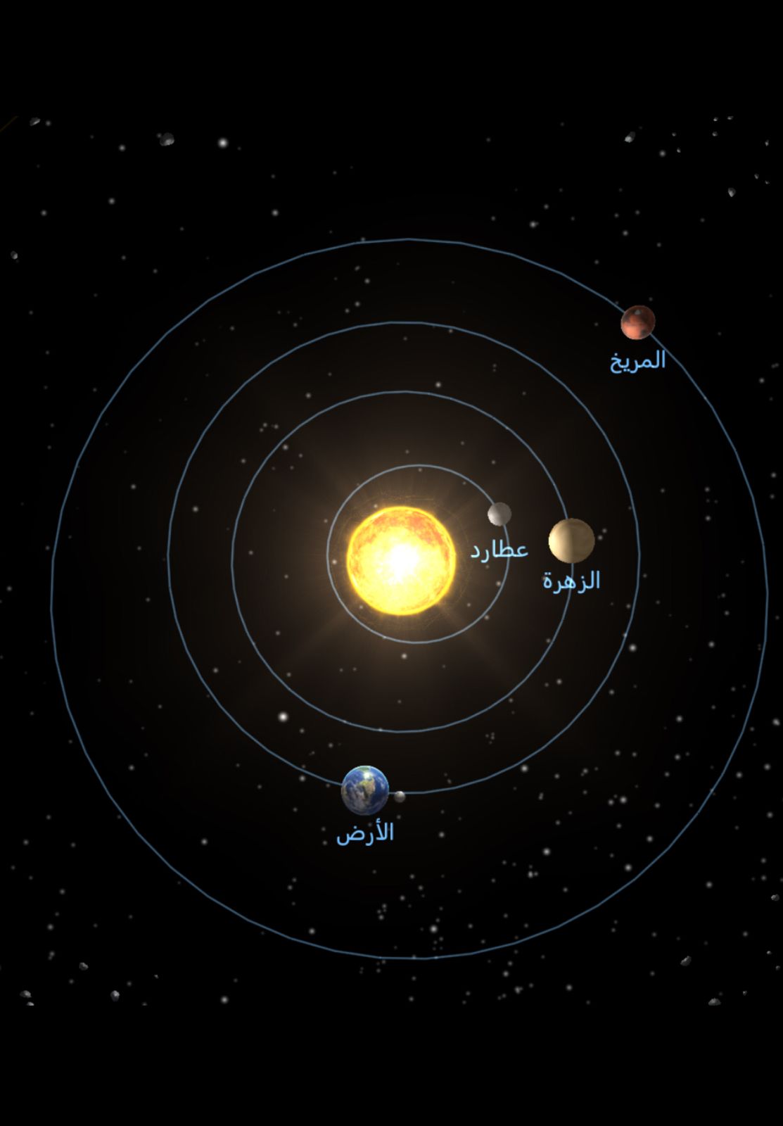 الصورة المرفقة: محاكاة حاسوبية توضح مواقع الكواكب الصخرية في نظامنا الشمسي في الوقت الحالي علماً بأن المسافات في هذا الرسم لا تمثل المسافات الحقيقية في الفضاء.