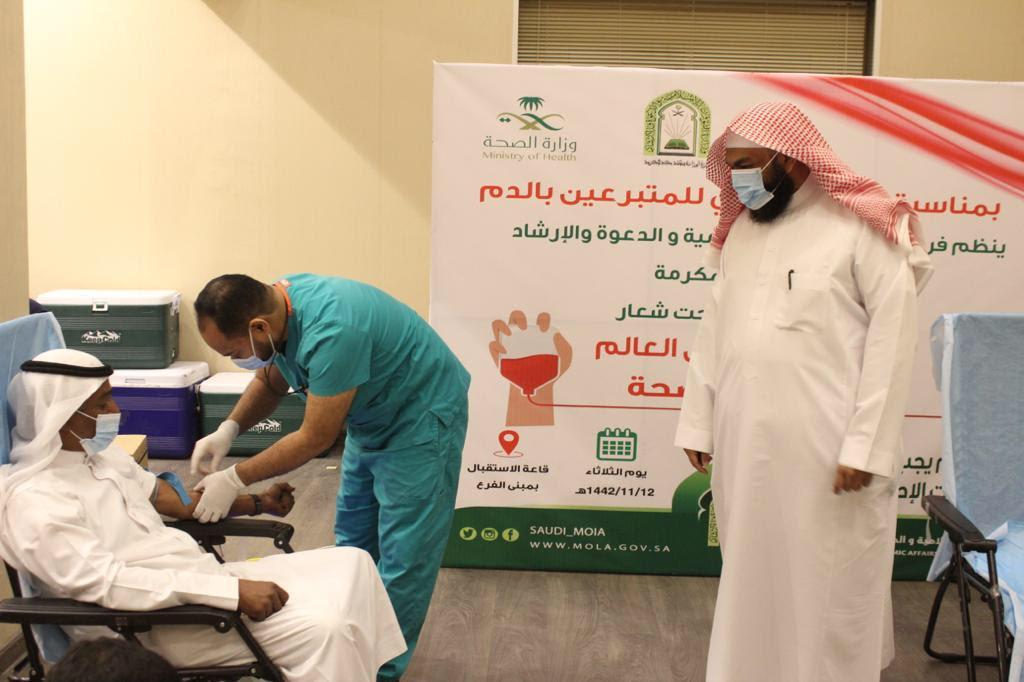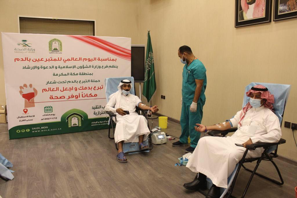 نظم فرع وزارة الشؤون الإسلامية والدعوة والارشاد بمنطقة مكة المكرمة ممثلاً بإدارة الإعلام والاتصال المؤسسي بالفرع وبالتعاون مع المديرية العامة للشؤون الصحية بالمنطقة ،اليوم في مقر الفرع، حملة التبرع بالدم تحت شعار “تبرع بدمك واجعل العالم مكاناً أوفر صحة”، بمشاركة عدد من منسوبي ومنسوبات الفرع.