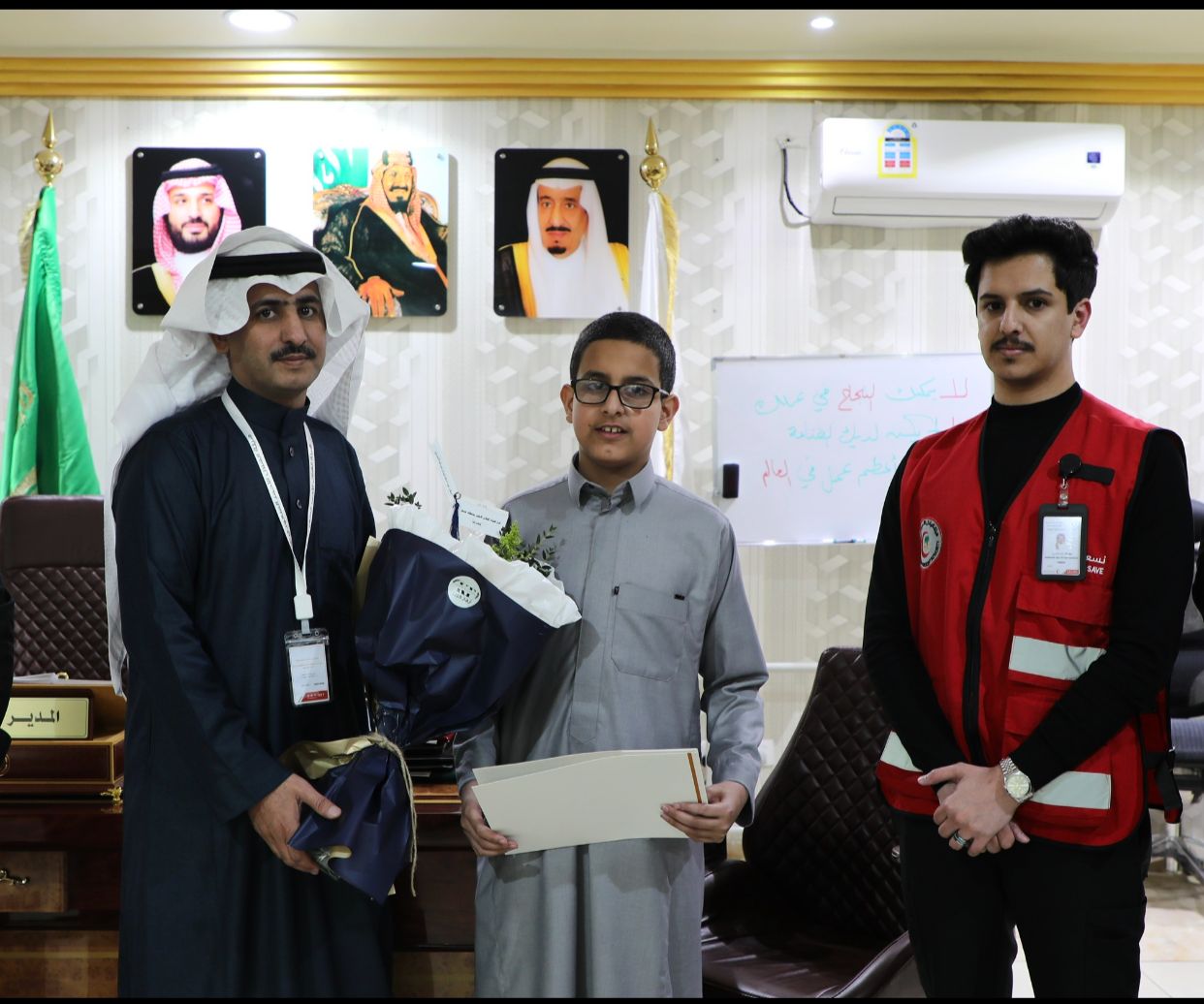 وبتوجيه من سعادة مدير عام فرع هيئة الهلال الأحمر السعودي الأستاذ: محمد بن عبدالله الشهري تم الأطمئنان على صحة المريضة و استضافة و تكريم الطفل : عبدالسلام الأحمري بمقر هيئة الهلال الاحمر بمنطقة عسير وذلك نظير ما قام به من اجراءات اسعافية صحيحة مكنته بعد الله عزوجل من إعادة الحياة لوالدته.