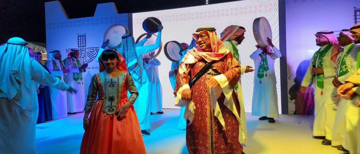 وبدأ الحفل بالسلام الملكي السعودي، وتقديم مجموعة من الفقرات المميزة تعبيرًا عن الفخر والولاء لتاريخ المملكة العريق، بالإضافة الى العروض الحية المتنوعة، وفقرات متنوعة للأسرة والطفل وعروضًا فلكلورية مميزة من خلال العرضة السعودية والتي تعبر عن الاعتزاز بالهوية الوطنية والتراث السعودي, وفقرات العروض المميزة والتي أضفت جواً من الإثارة إلى الفعاليات, وكذلك تم توزيع أكثر من (500) هدية تذكارية على الأطفال ضمن الفعاليات, هذا وقد توشحت شوارع المحافظة ومداخلها براية التوحيد من خلال تركيب أكثر من (600) علم على المباني الحكومية وأعمدة الإنارة بالشوارع والميادين، بالإضافة إلى تركيب أكثر من (200) لوحة وطنية تحمل هوية يوم التأسيس بعبارات ترسخ القيم الوطنية، وعدد كبير من المجسمات الجمالية المضيئة بمداخل المحافظة والشوارع الرئيسية والميادين .