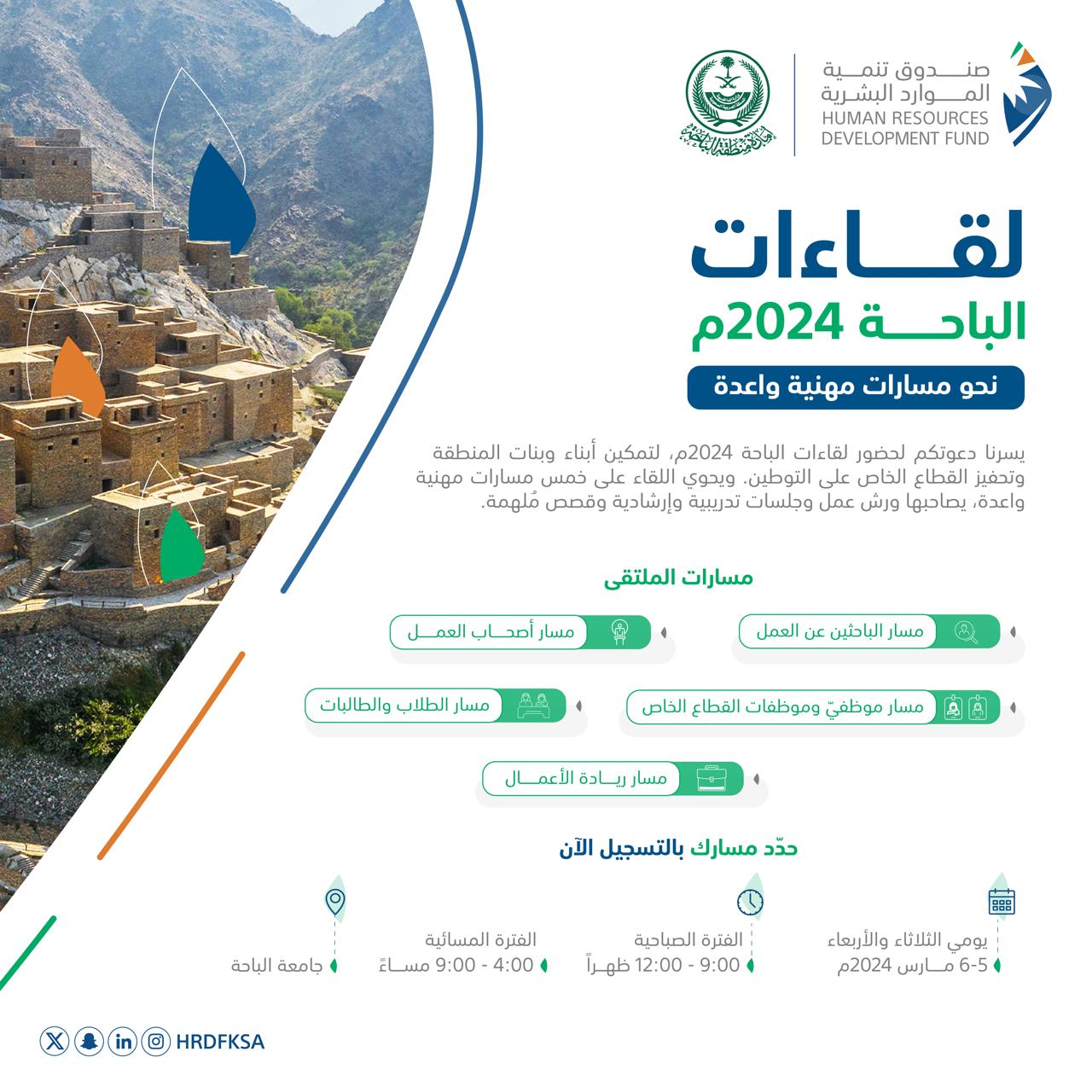 صندوق تنمية الموارد البشرية يدعو الأفراد الراغبين لحضور لقاءات الباحة إلى التسجيل إلكترونياً