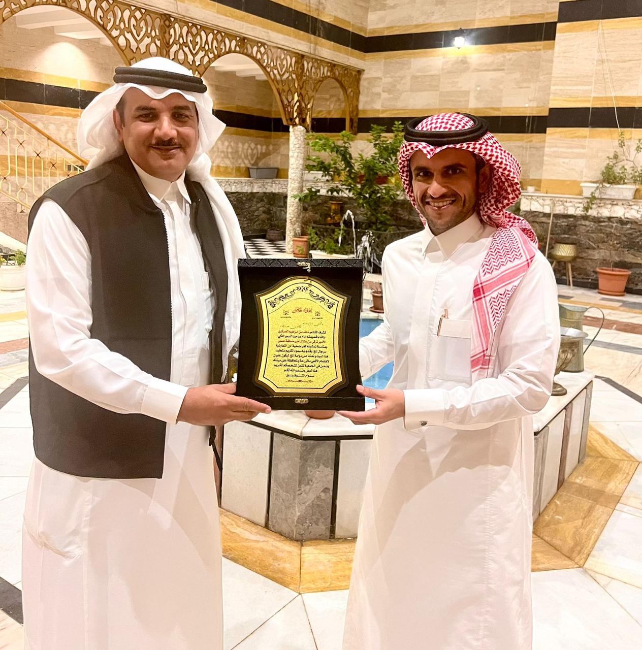 كرم سعادة رئيس مجلس إدارة جمعية البن بمحافظة رجال ألمع الدكتور عبد الرحيم آل مشاري، وبحضور سعادة مدير فرع الجمعية السعودية للإعلام والاتصال بالمنطقة الجنوبية الدكتور عبد الله آل مرعي، مساء أمس الجمعة، وكيل شيخ شمل قبائل بني عبدالعوص الشيخ الدكتور خلف بن إبراهيم العسكري، وذلك بمتحف طليطلة بمحافظة رجال ألمع، نظير دوره البارز في دعم ومتابعة أعمال مهرجان البن الأول بالمحافظة.