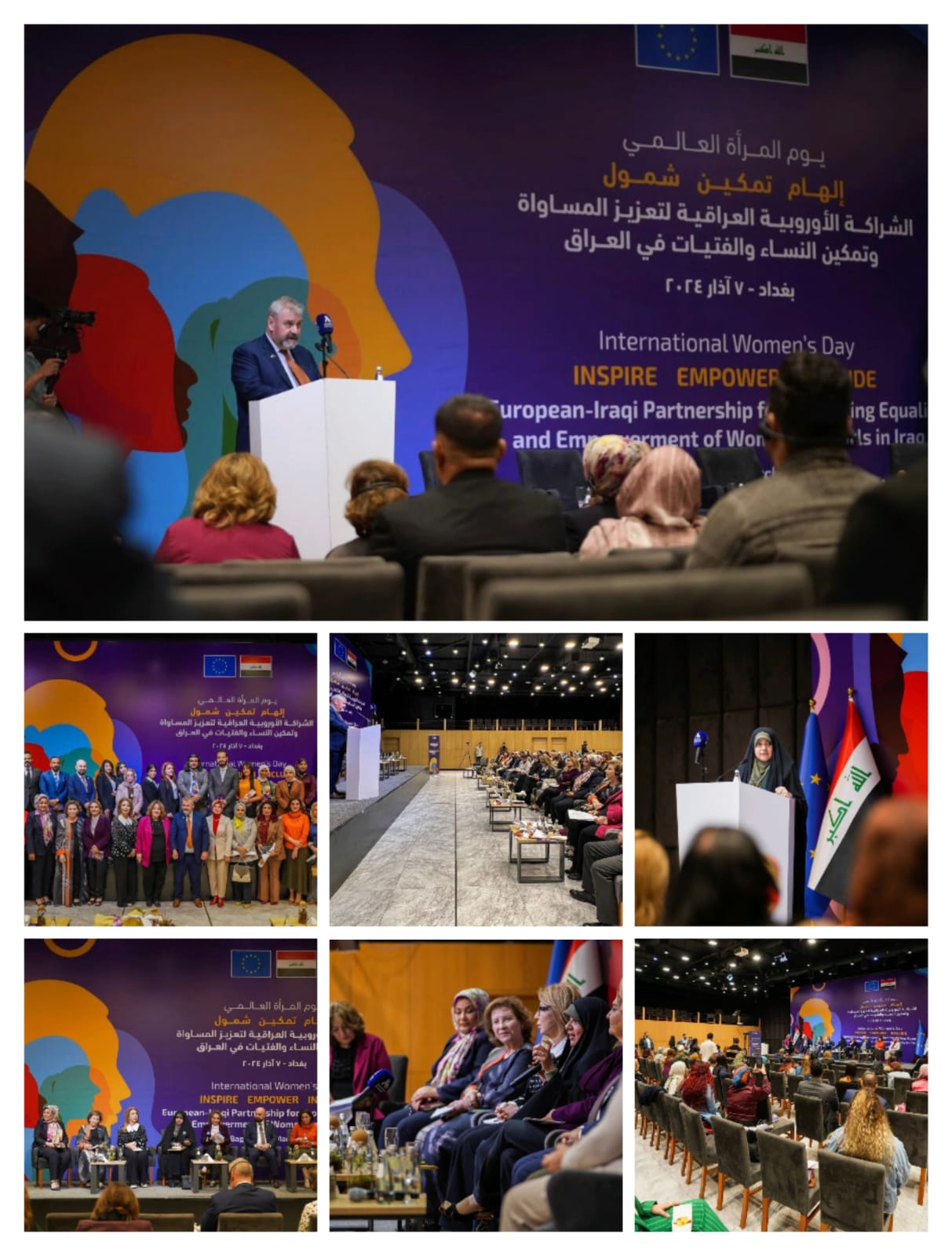 وبين سفير الاتحاد الأوروبي لدى العراق توماس سايلر ، في كلمة له خلال الاحتفالية إن “يوم المرأة العالمي تم تأسيسه قبل 100 عام للاحتفال بهن والحصول على حقوقهن”، مؤكداً “نحن كممثلين عن الاتحاد الأوروبي في العراق ملتزمون بالتعاليم الدولية لتمكين المرأة حتى في العمل والشركات والجيش والشرطة وفي جميع الدوائر بما يسهم في الاقتصاد ونستمر بالتعاون مع الحكومة لإزالة العقبات”، مشددا على “ضرورة العمل معاً لخلق فرق بتمكين المرأة وسوف نستمر للوصول الى بيانات يعتمد عليها لحقوق النساء وضمان تنفيذها وتضمينها سياسياً”، داعياً إلى “العمل معاً لضمان حقوق الإنسان والمرأة، إذ إنه خلال جائحة كورونا زاد العنف ضد المرأة”