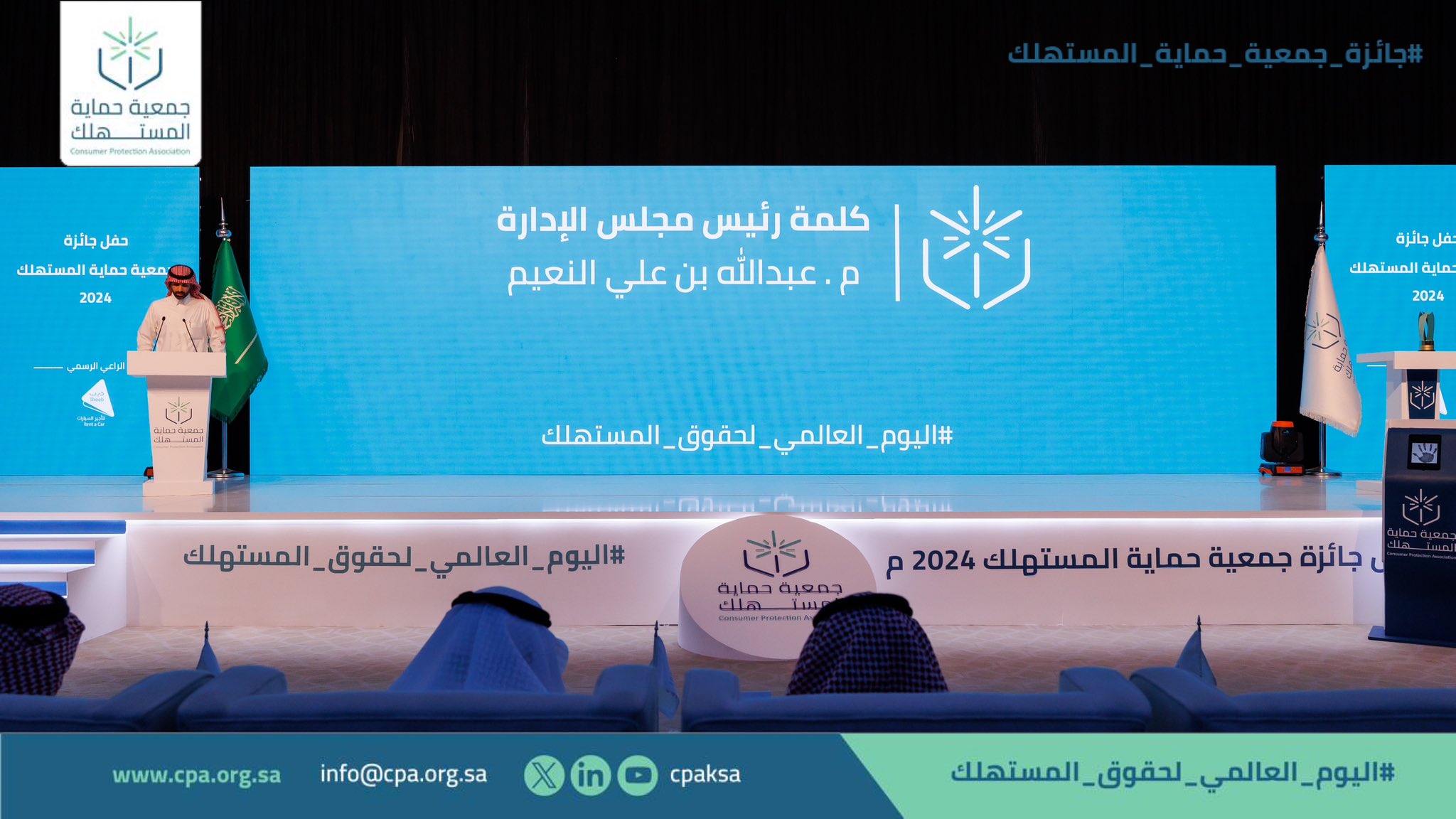 وفي الختام أعلنت الجمعية الجهات الحاصلة على جائزة جمعية حماية المستهلك، لإسهاماتهم في تحسين تجربة المستهلك، ففي مسار القطاع الحكومي، فازت الهيئة السعودية للمواصفات والمقاييس والجودة، لجهودها في سلامة المنتجات ورفع وعي المستهلك، كما فازت الهيئة العامة للطيران المدني، لجهودها في تحديث لوائح حماية المستهلك في قطاع الطيران المدني وتفعيلها.