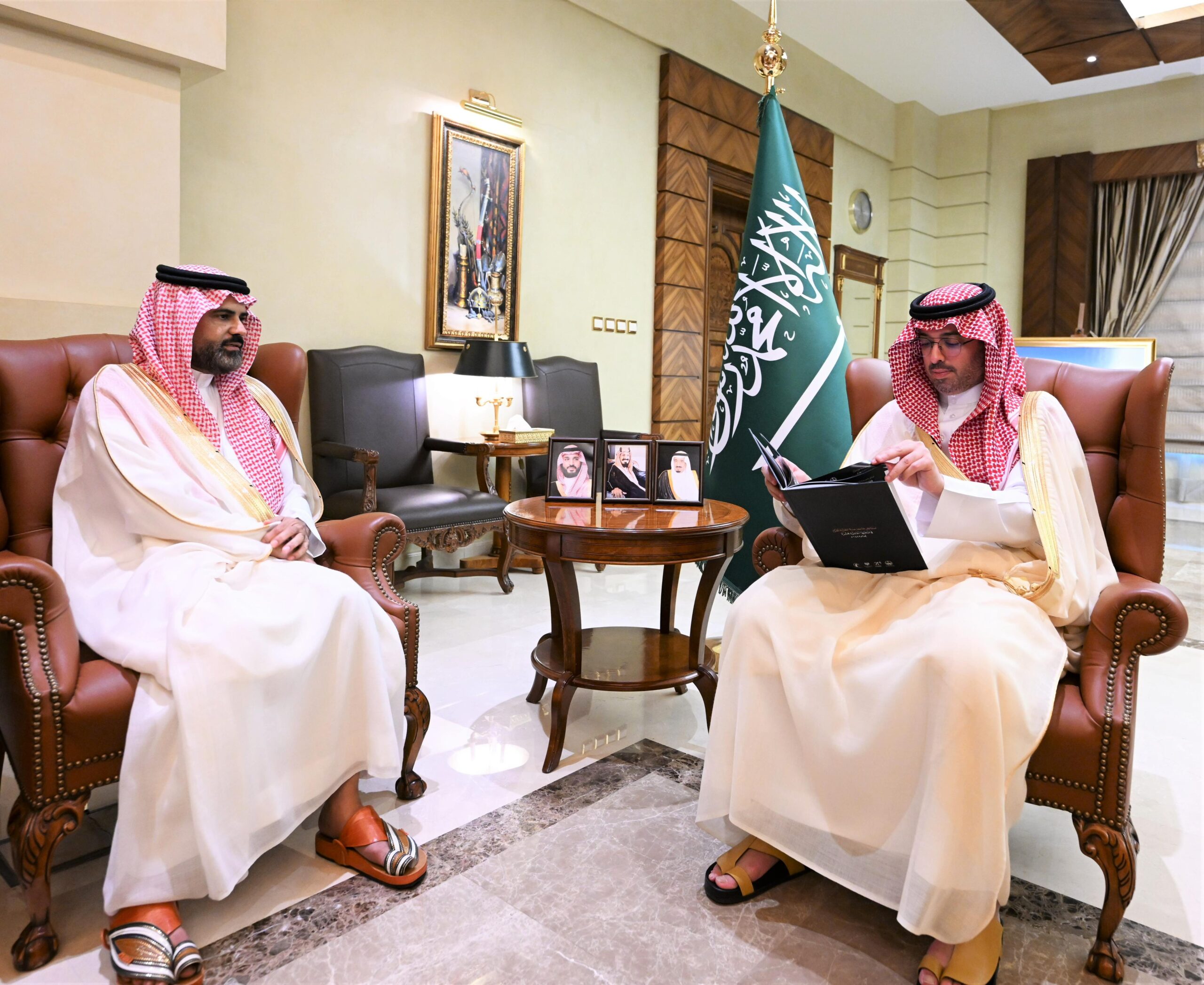 استقبل صاحب السمو الأمير سعود بن عبدالله بن جلوي محافظ جدة في مكتبه اليوم، معالي رئيس جامعة جدة الدكتور عدنان بن سالم الحميدان، يرافقه وكيل الجامعة الدكتور عبيد بن علي آل مظف، وأمين عام المسابقة الدكتور فهد بن زويد العطري.