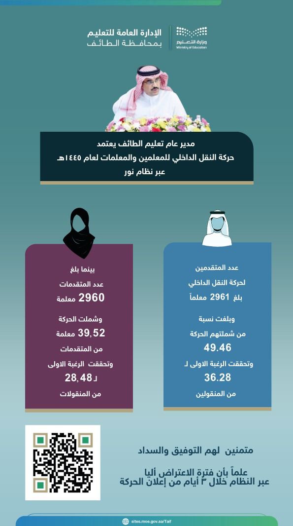 تعليم الطائف يعتمد حرك النقل الداخلي للمعلمين والمعلمات