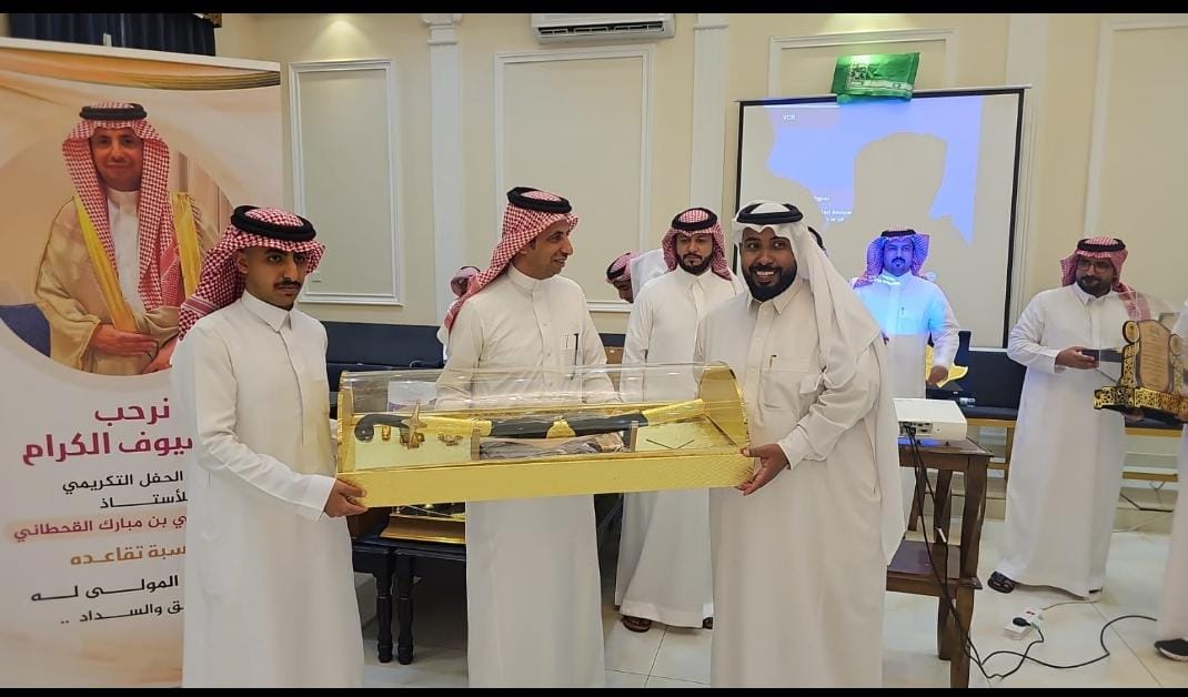 أقامت إدارة ومنسوبي مدرسة شعبة بن الحجاج ومتوسطة تحفيظ القرآن الكريم بمكتب تعليم جنوب خميس مشيط حفل تكريم وتوديع الأستاذ ناصر بن علي بن مبارك بن دخيل الله القحطاني وكيل المدرسة بعد مسيرة(٢٩) عام حافلة بالعطاء والإنجاز والتميز حضر برنامج التكريم والد الأستاذ ناصر القحطاني وجمع من الأقارب والأصدقاء والزملاء