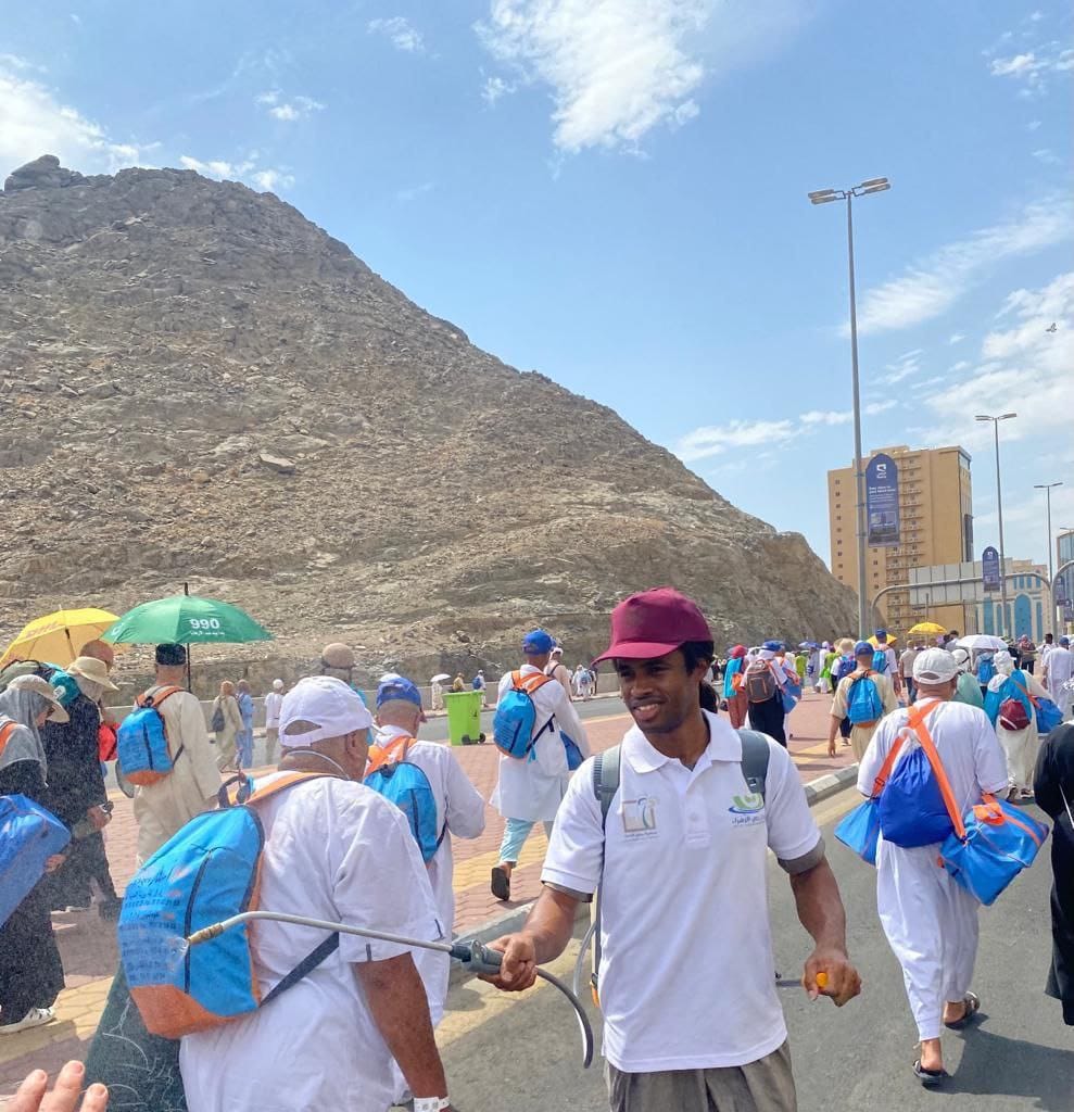 نشر كل ما تصدره الجهات المعنية بالحج توعيه لضيوف الرحمن- إهداء المظلات الشمسية