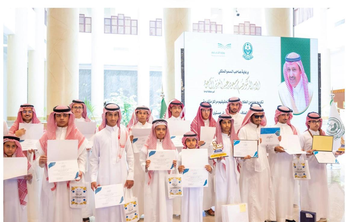 ‎وهنأ سمو أمير منطقة الباحة الطلاب المكرمين، متمنيًا لهم المزيد من التوفيق والنجاح في تحقيق التميز العلمي.
