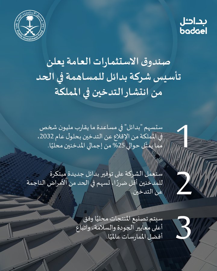 جديرٌ بالذكر أن تأسيس شركة “بدائل” بهدف الحد من انتشار التدخين من خلال توفير بدائل آمنة تماشياً مع رؤية 2030 التي تسعى إلى تحسين جودة الحياة، وتهدف إلى مساعدة مليون شخص على الإقلاع عن التدخين بحلول عام 2028، . وقد حققت الشركة خلال عامها الأول إنجازات مهمة،