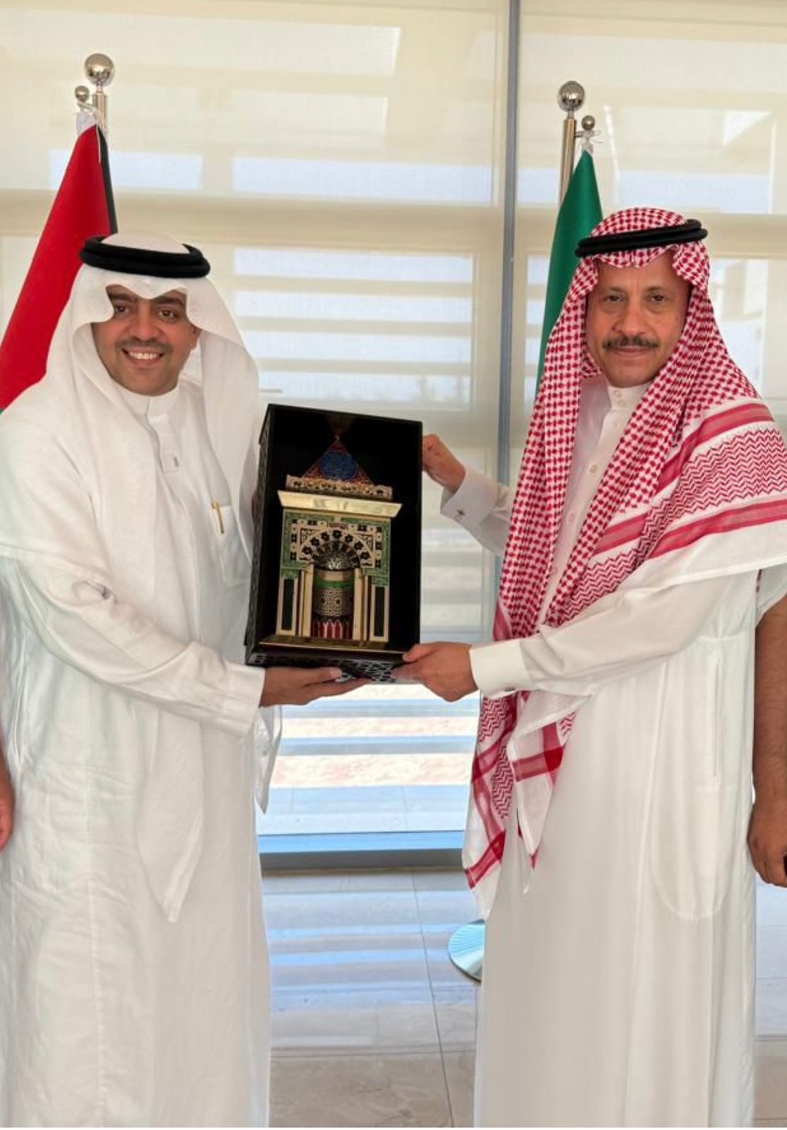 كما قدم رئيس الوفد السعودي لكرة الطائرة للناشئين الأستاذ باسم منقل هدية تذكارية مقدمة من الاتحاد السعودي لكرة الطائرة للسفير الأستاذ نايف السديري.