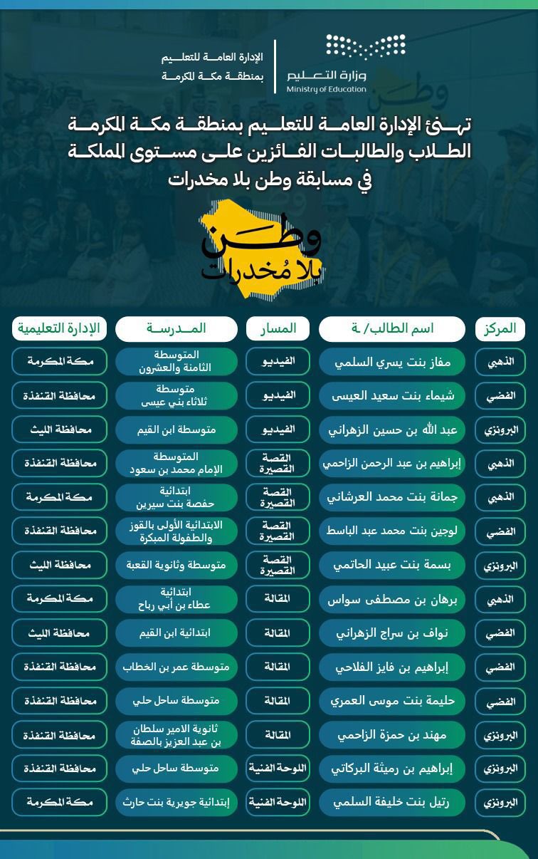 تعليم مكة يهنئ الطلاب الفائزين