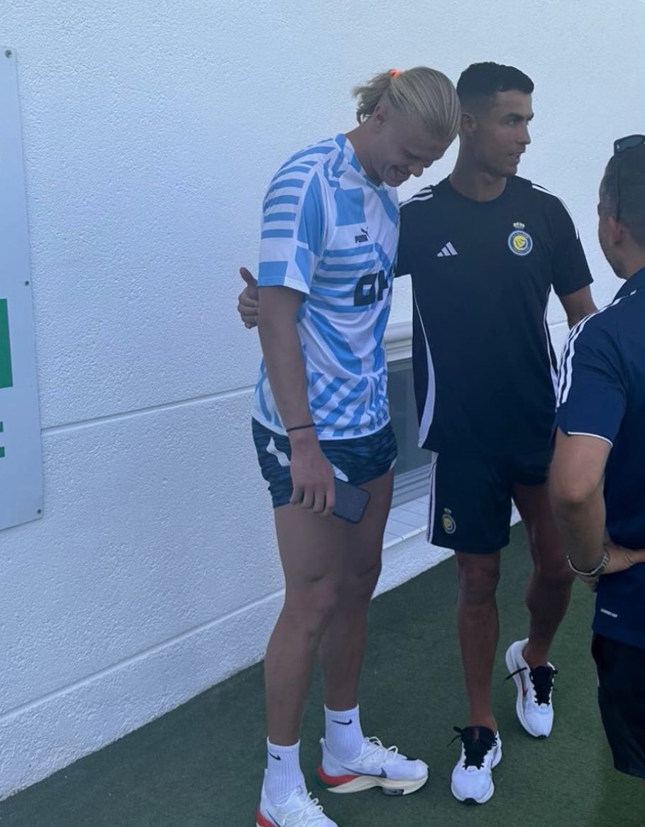 التقى مهاجم فريق مانشستر سيتي الانجليزي والمنتخب النرويجي ايرلينج هالاند بالمحترف السنغالي ساديو ماني لاعب نادي النصر السعودي خلال معسكر الفريق في اسبانيا.