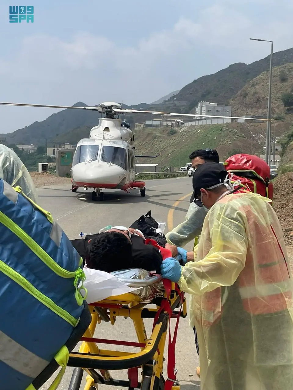 باشر الإسعاف الجوي لهيئة الهلال الأحمر في منطقة جازان، حالة مرضية على ارتفاع 3,000 قدم في الجبل الأسود بمحافظة الريث، في منطقة وعرة مرتفعة والنائية.