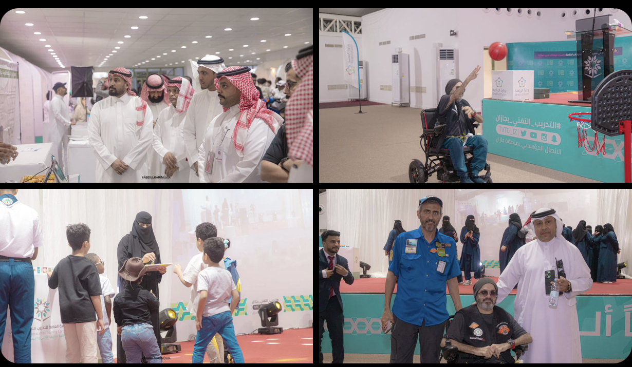 احتفالا لذوي الإعاقة تحت شعار (لست لوحدك.. نحن معك)، باستضافة الكلية التقنية بجازان، بحضور مدير فرع الوزارة م. سعد بن فهد القحطاني وبحضور عميد كلية التقنية بجازان م. محمد بن عبده صليلي وعدد من الشخصيات من القطاعات الحكومية والخاصة والقطاع الغير ربحي.