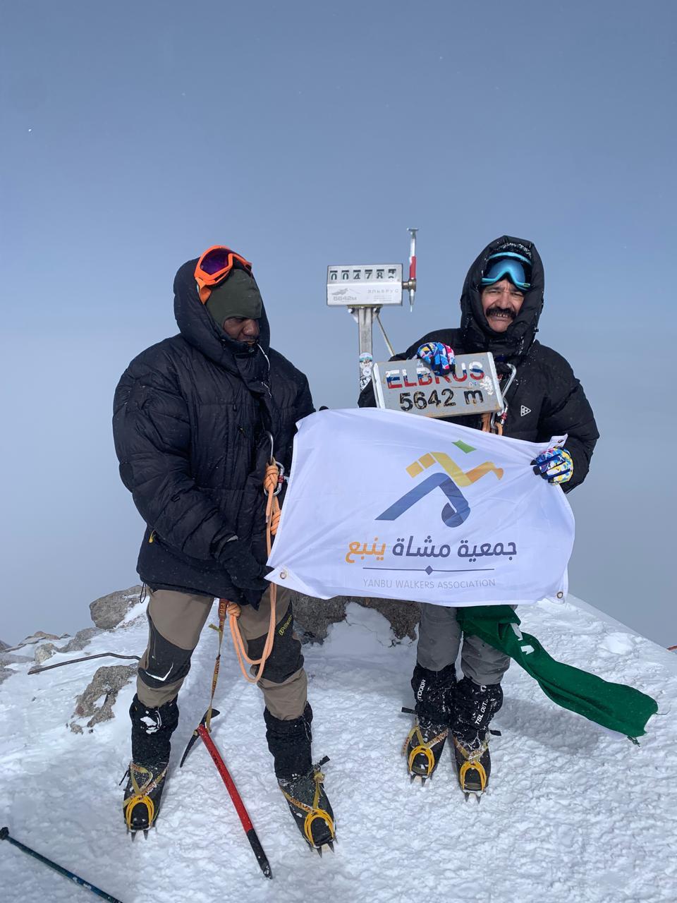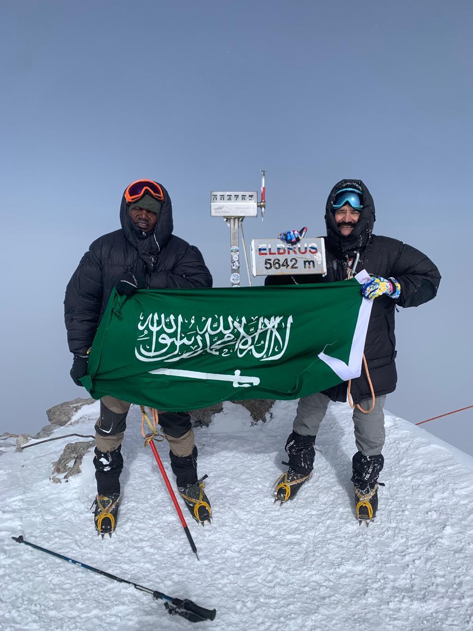 المغامرون امين محمد شريف وخالد محمد هوساوي يرفعون علم المملكة العربية السعودية عند وصولهم إلى أعلى قمم العالم البروس اعلى ارتفاع ٥٦٤٢م في روسيا واوروبا يوم الأحد ٨ سبتمبر ٢٠٢٤ مسجلين إنجاز جديد على المستوى الشخصي لهم ولجميع الشباب السعودي الذي نعتز نفتخر جميعاُ فيه