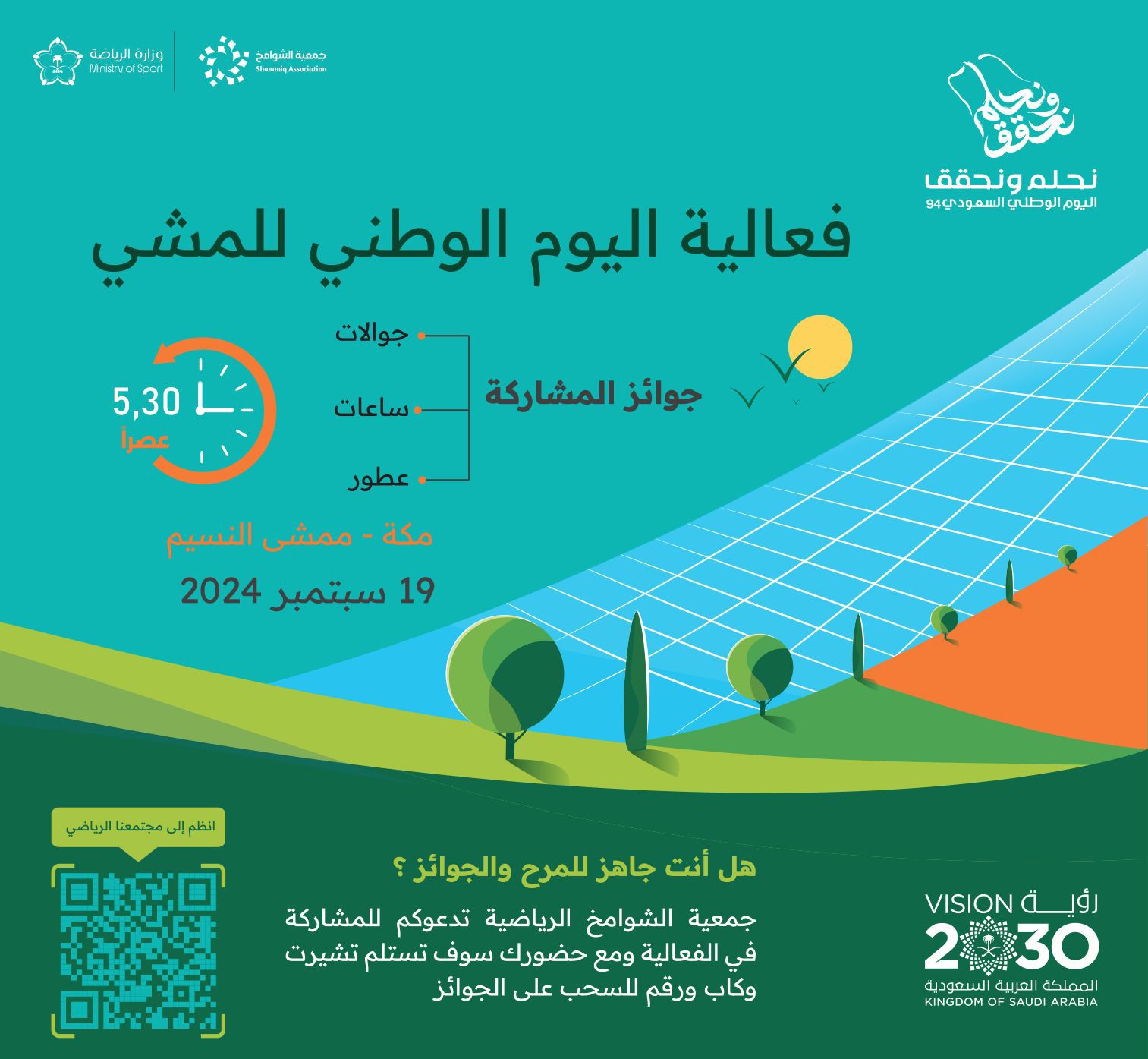 مبادرة رائعة من جمعية الشوامخ الرياضية لتعزيز النشاط البدني والتفاعل الاجتماعي بين سكان مكة المكرمة. نثني على جهود الجمعية في تنظيم هذه الفعالية وتقديم الجوائز المحفزة. ندعو الجميع للمشاركة والاستمتاع بالأجواء الرياضية المميزة على ممشى النسيم يوم الخميس. فرصة لا تفوت!