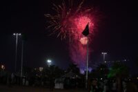 ثم انطلقت الألعاب النارية التي أضاءت سماء الحفل ابتهاجًا واحتفالًا بيوم الوطن، ورسمت لوحة جمالية أذهلت الجميع، حيث تفاعلوا بتوثيق ذلك المشهد الجمالي عبر أجهزتهم الذكية ونشرها عبر وسائل التواصل الاجتماعي المختلفة، تعبيرًا عن الفرح والحب والسعادة بهذا اليوم وهذه المناسبة الغالية.