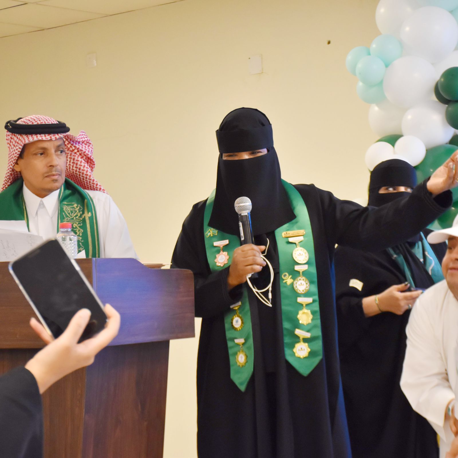 حيث بدأت فقرات الحفل بالنشيد الوطني ثم كلمة للأستاذة. عبير أبوربعيه وفلم وثائقى لإنجازات المملكة العربية السعودية وبعد ذلك كلمة لقائدة الفريق أ. عيشة ادريس فلاتة