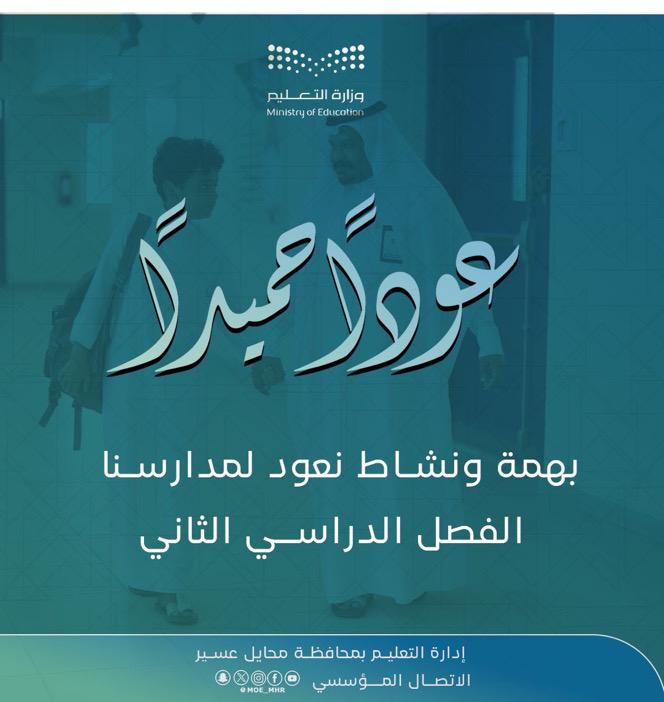 يعود أكثر من 92 ألف طالب وطالبة اليوم الأحد إلى مقاعد الدراسة في مدارس تعليم محايل عسير، لإكمال واستئناف رحلتهم التعليمية للفصل الدراسي الثاني 1446هـ.