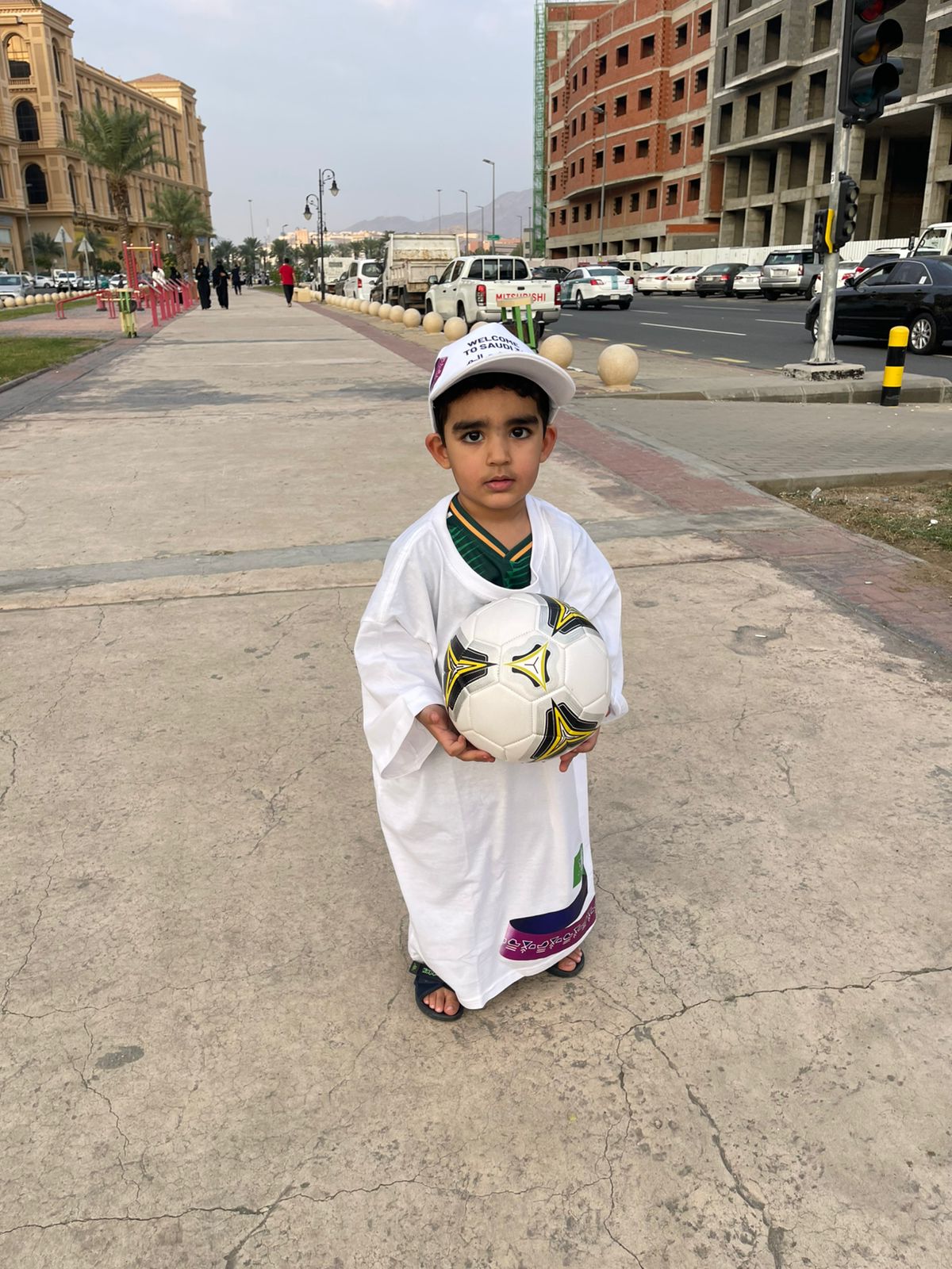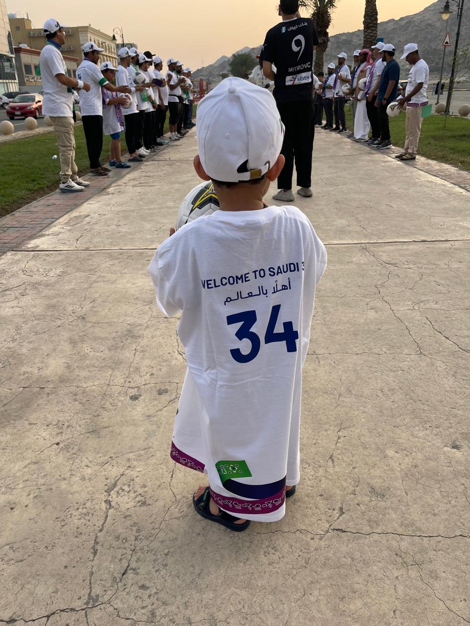 وسعدت كثيراً بمشاركتي في الفعالية ومشاركة أصغر طفل وهو الابن ليث الزهراني الذي أصر على ارتداء التيشيرت الخاص بالفعالية وحمل الكرة والتلويح بالعلم المكتوب عليه