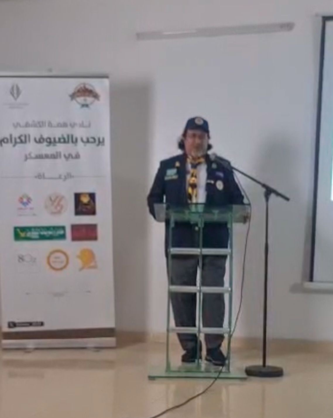 حيث قلد ومرافقيه عدد من القادة الحاصلين على الشارة الخشبية وتم ايضاً تبادل الهديا وقدم درع المكتب للنادي وآخر لقائد همة الكشفي .