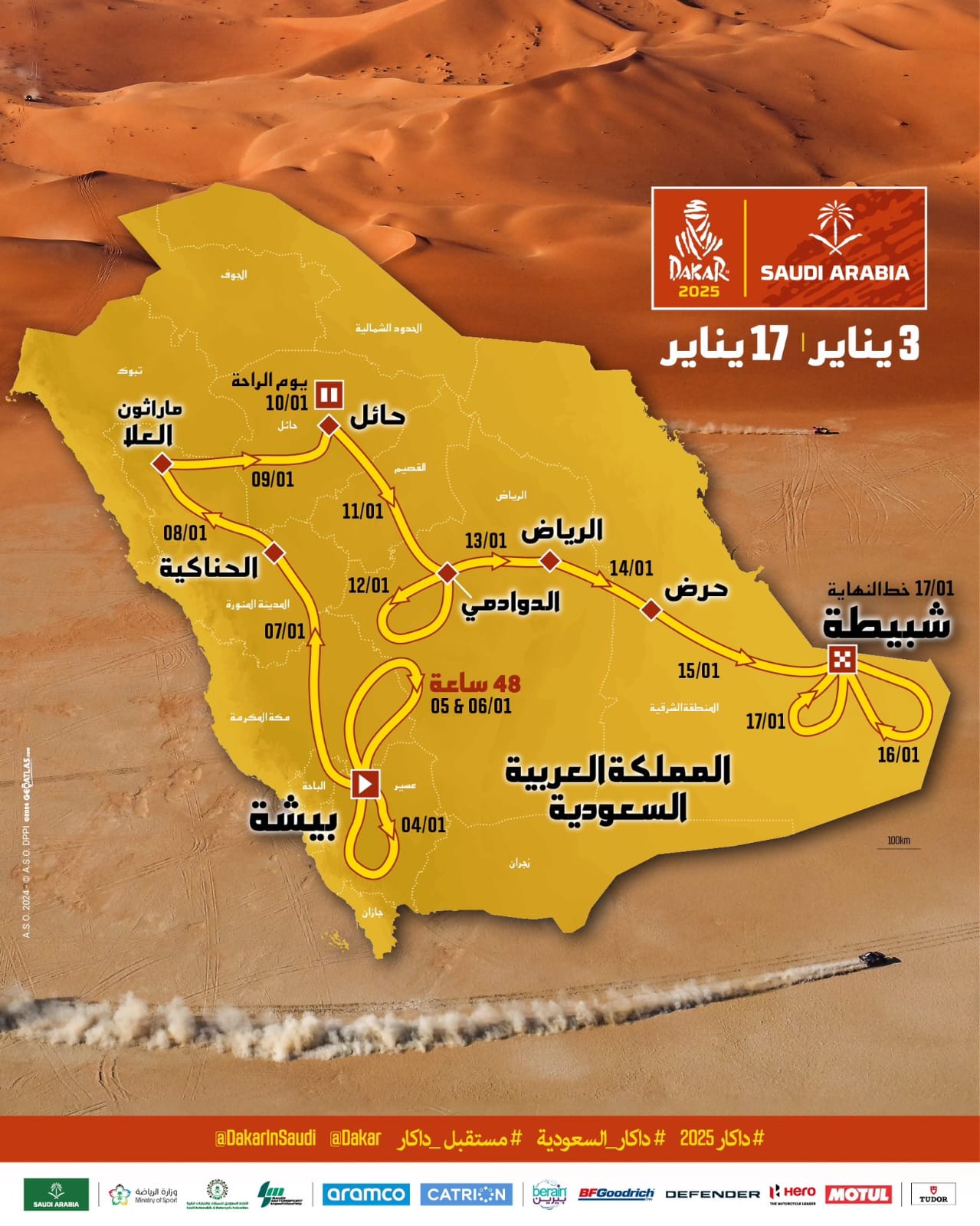 ينطلق يوم غدٍ الجمعة 3 يناير 2025م، من محافظة بيشة، السباق الأكبر والأطول في عالم رياضة المحركات “رالي داكار السعودية 2025″، الذي تستضيفه المملكة للمرة السادسة على التوالي، ويستمر حتى تاريخ 17 يناير الجاري، وذلك بتنظيم من الاتحاد السعودي للسيارات والدراجات النارية، وإشراف وزارة الرياضة.