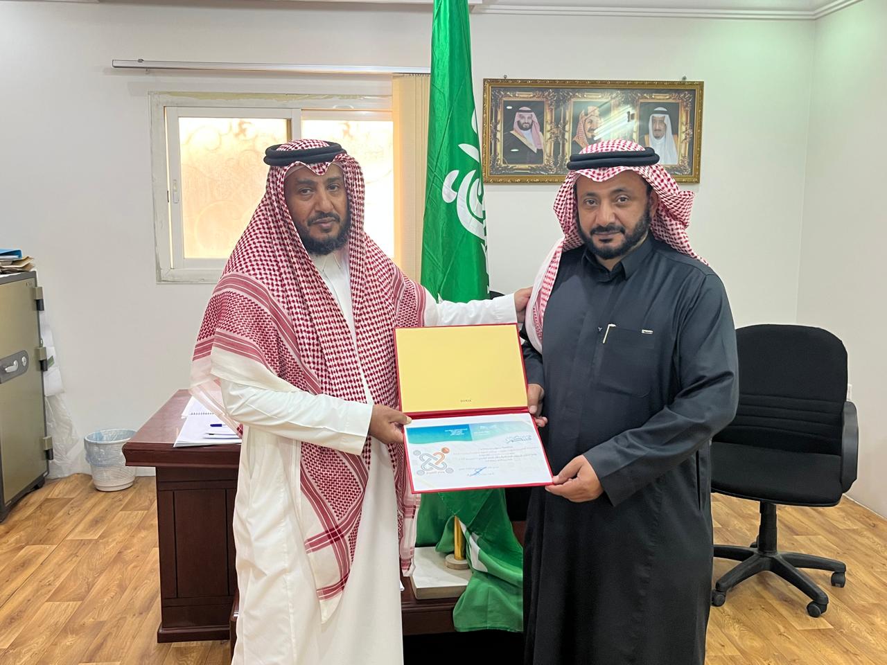 حيث تم منح إدارة المدرسة شهادة شكر وتقدير وتميز من سعادة مدير عام التعليم بمنطقة عسير الأستاذ فهد بن صالح عقالا لمدير المدرسة الأستاذ عبدالله بن سعيد آل خرصان الشهراني ووكيل المدرسة للشؤون التعليمية الأستاذ مشبب بن عبدالله الشهراني.