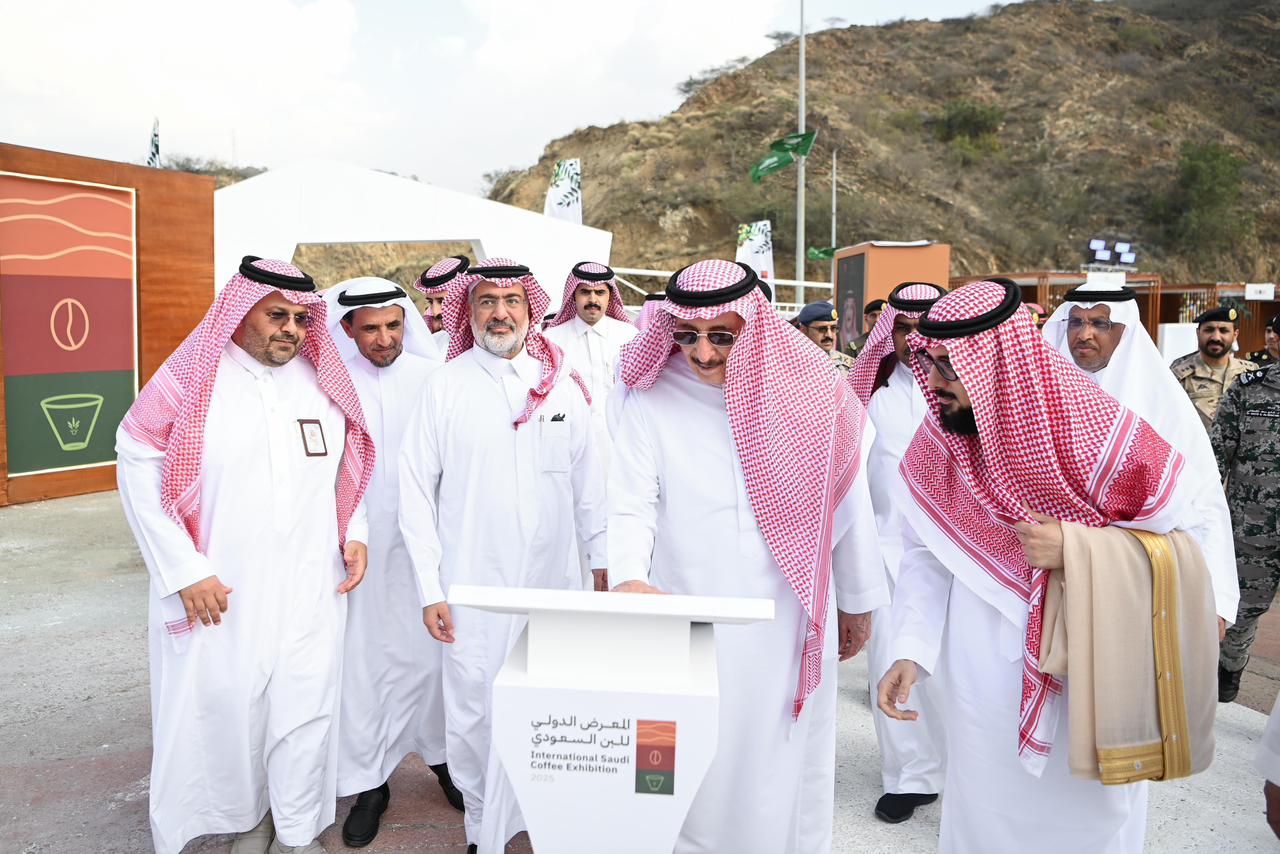 وابوريت بعنوان ( قوافل البن) ، فيما كرم سمو أمير المنطقة الفائزين بمسابقة محصول التميز السعودي التي نفدتها الشركة السعودية للقهوة من مزارعي مزارعات البن بمناطق جازان وعسير والباحة والتقطت الصور التذكارية بالمناسبة.