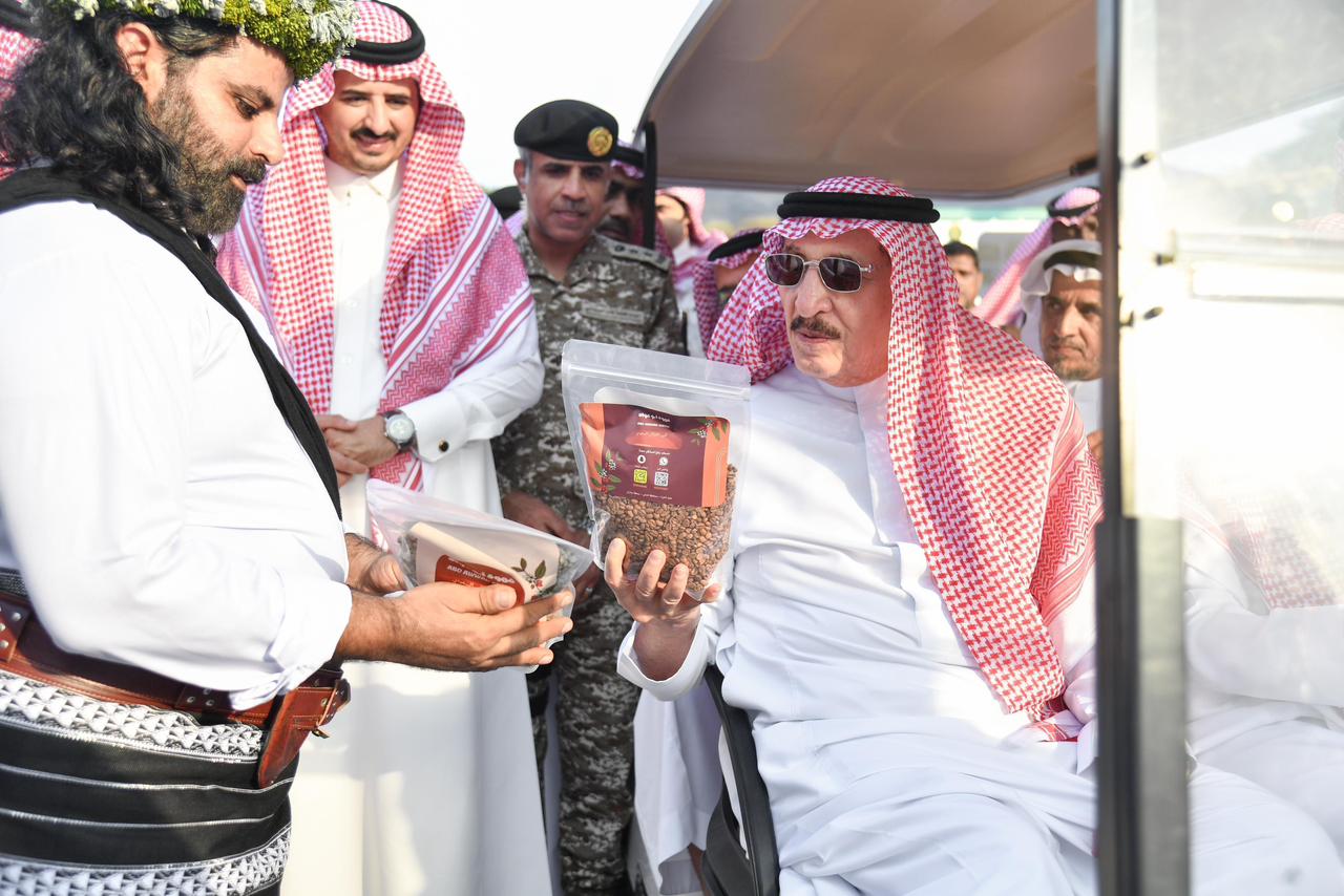 ذات العلاقة،والجمعيات التعاونية والشركات المشاركة، والاركان الخاصة بمزارعي البن بمنطقتي جازان وعسير ، والأسر المنتجة، و معارض الحرفيين والمزارع الريفية والمسارات السياحية، مطلعًا على ما تضمنه من معروضات وفعاليات متنوعة.