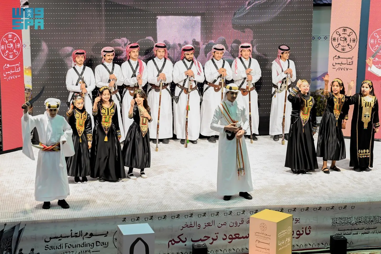 وتضمن الحفل المقام عرض أوبريت ” ملحمة التأسيس” بمشاركة عدد من الطلاب والطالبات، وكلمات نثرية وعروضًا ثقافية، ليختتم الحفل بتكريم الجهات الداعمة والمشاركين والمنظمين.
