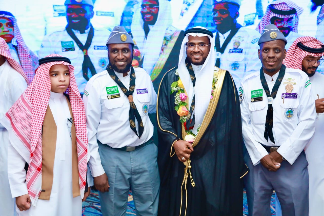 كما تسلم من المشرف العام على فريق كشافة شباب مكة المكرمة القائد الكشفي عثمان خليفة مدني هدية عبارة عن ترمس تراثي الماء زمزم