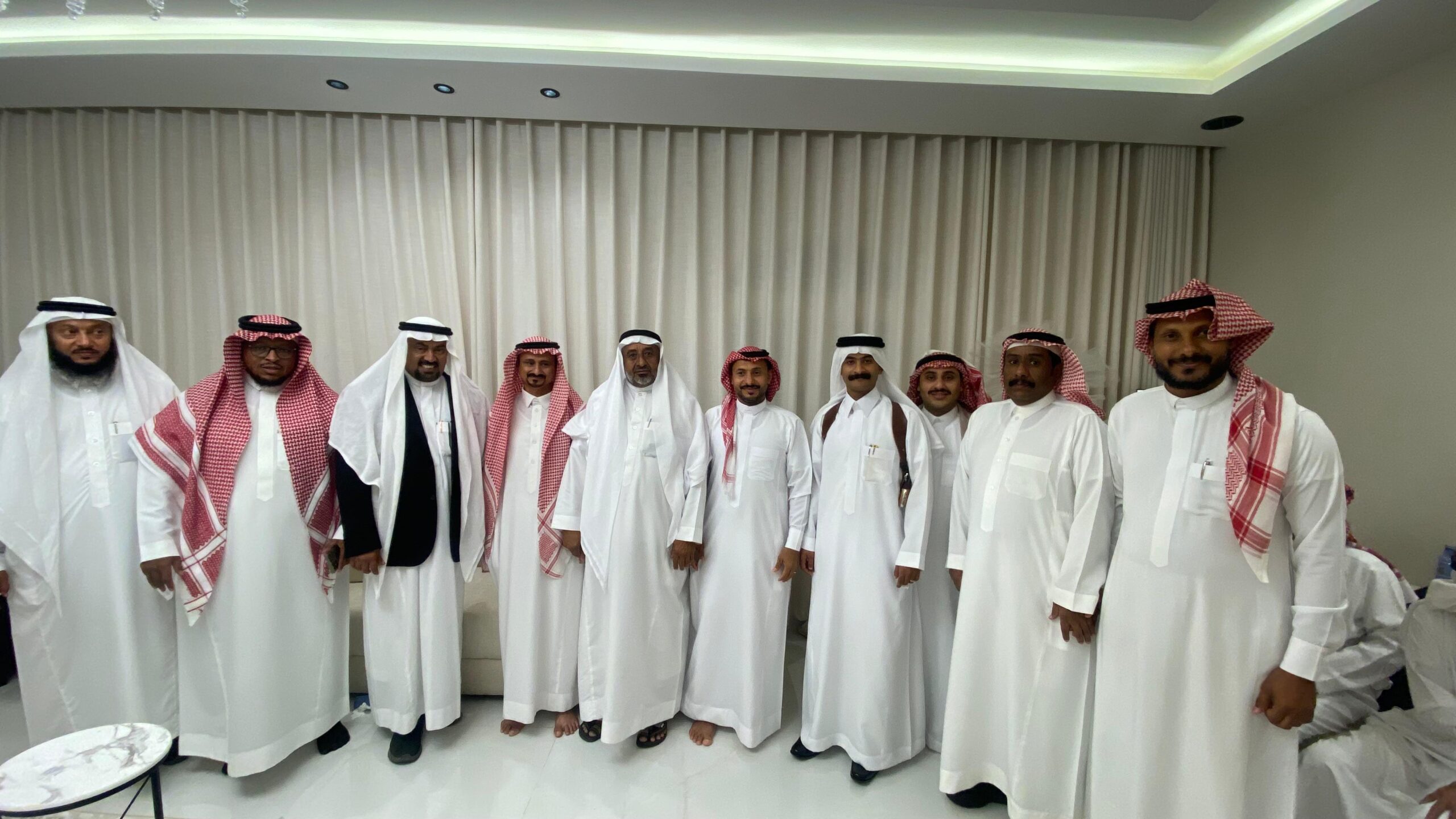 بحضور شيخ شمل الموسم الشيخ عيسى على ابوطالب عريبي والمشايخ و الاهالي والزملاء والأهل والأصدقاء، وعدد من المدعوين مهنئين ومباركين، ومن جانبه شكر الشاب ووالده كل من هنأ وبارك وكل من شاركهم هذه الفرحة والمناسبة السعيدة