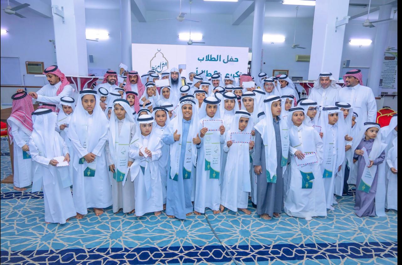 كما تم تكريم حافظين لكتاب الله وهم مصعب عاتق البشري وطلال عاتق البشري وشمل التكريم كافة معلمي الحلقات بالمجمع