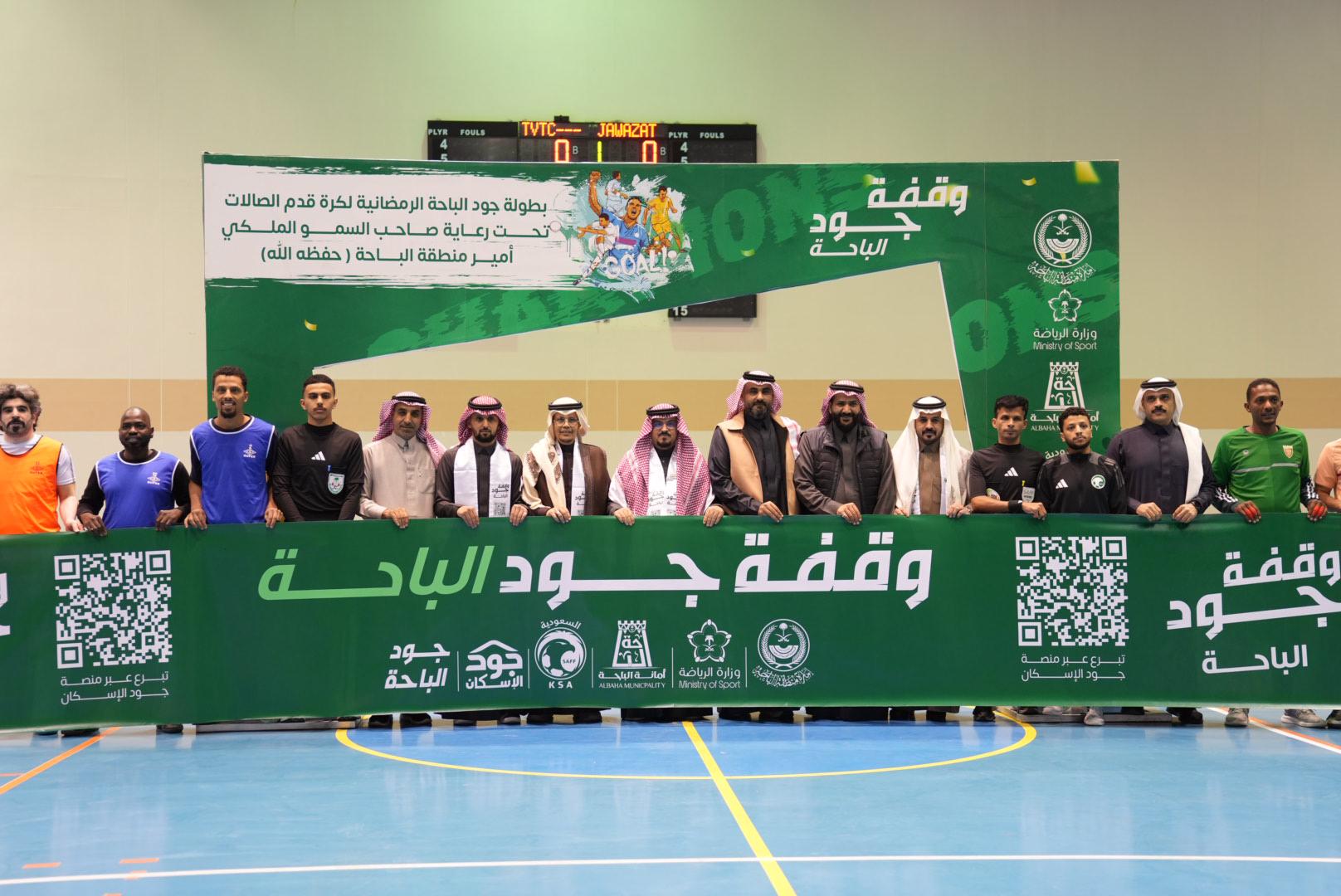 وتقام الدورة، تزامنًا مع الحملة الوطنية لجود المناطق التي انطلقت مع بداية شهر رمضان لتوفير السكن للأسر الأشد حاجة في جميع المناطق، ويشارك بها 12 فريقًا يمثلون الإدارات الحكومية بالمنطقة، وتستمر لمدة 10 أيام بمعدل 21 مباراة، بهدف التسويق والترويج لحملة جود الباحة للإسكان ضمن الحملة الوطنية لجود المناطق، حيث تستهدف “وقفة جود الباحة” لهذا العام توفير 29 مليون ريال، لإنشاء 190 وحدة سكنية للأسر الأشد حاجة بمنطقة الباحة.وأوضح مدير فرع وزارة الرياضة بمنطقة الباحة بندر بن سعد الغامدي، أن الدورة تأتي دعمًا للمساهمة في حملة جود الباحة للعام الثاني على التوالي