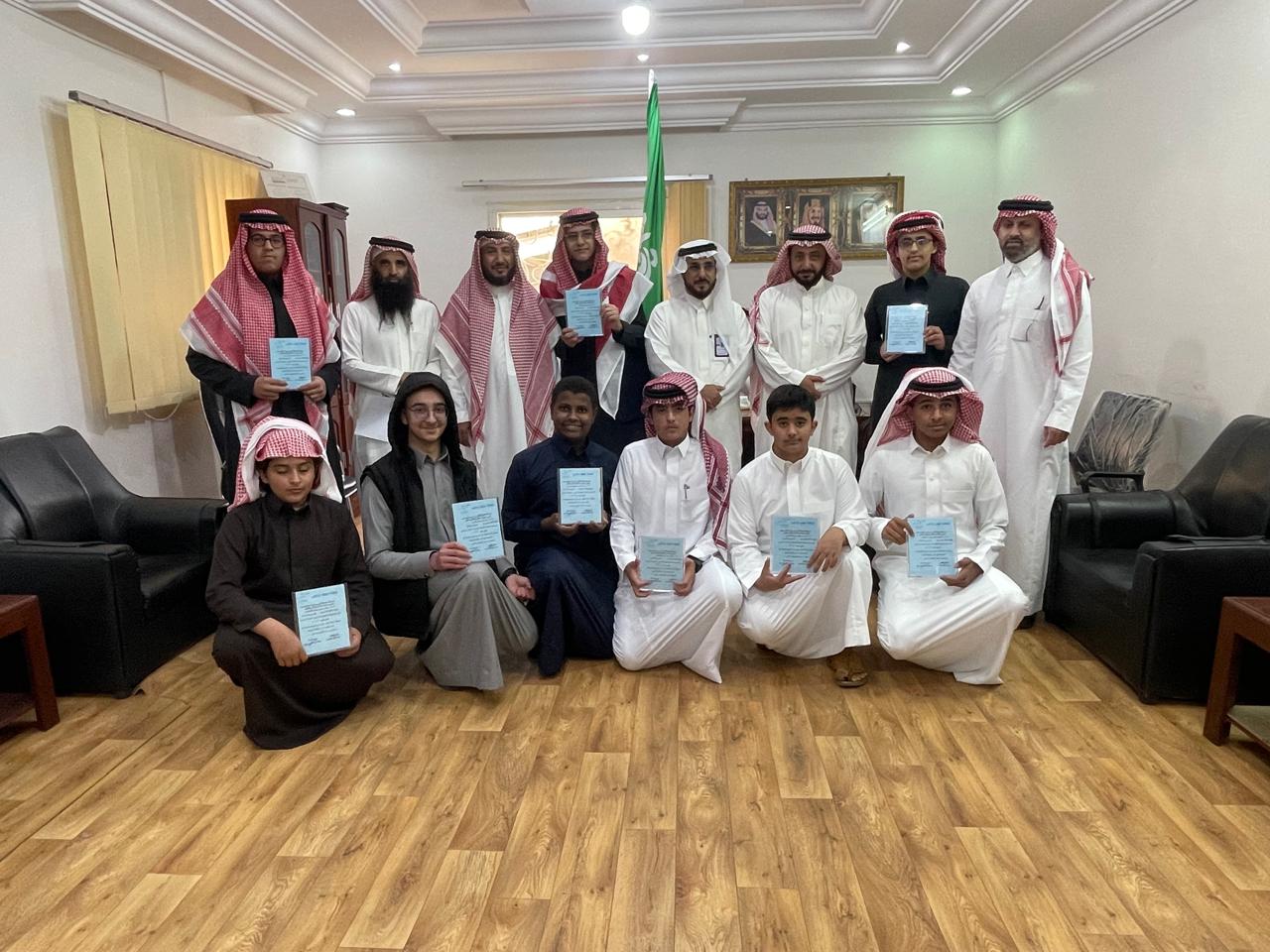 تم منحهم شهادات شكر وتقدير من إدارة المدرسة قدمها مدير المدرسة الاستاذ عبدالله بن سعيد آل خرصان الشهراني حضر برنامج التكريم الاستاذ مشبب عبدالله الشهراني وكيل المدرسة والأستاذ تركي العلياني وكيل المدرسة للشؤون الطلاب والموجه الطلابي بالمدرسة الأستاذ معدي حسين على ال حيه صحيفة أحوال الإلكترونية تقدم أصدق التهاني والتبريكات للطلاب الفائزين بالجائزة ونسأل الله تعالى للجميع التوفيق والسداد والنجاح