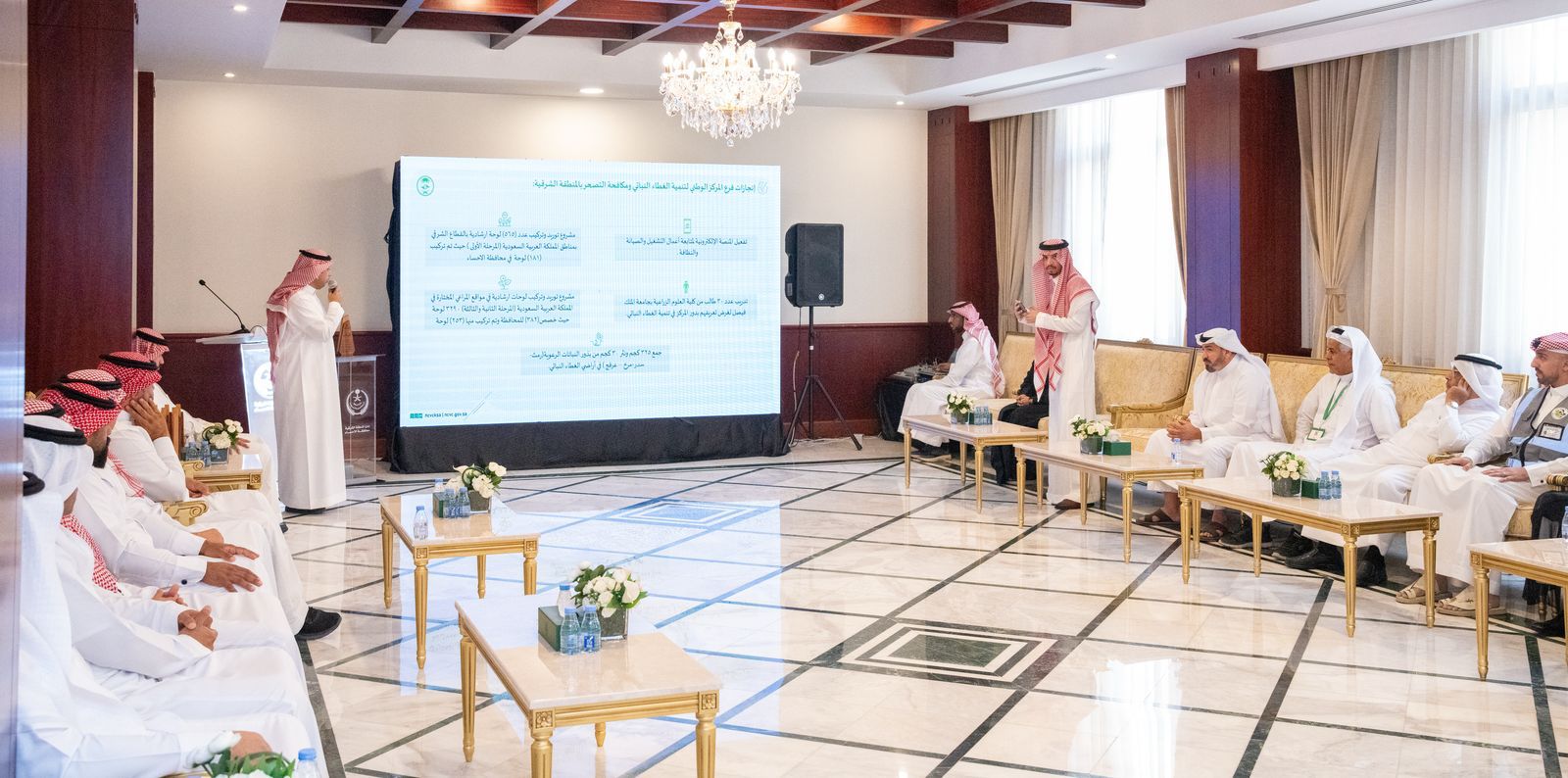 واطّلع سموّه، على عرضٍ لأبرز المنجزات التي حققها المركز خلال الفترة الماضية، من خلال تناول مجالات تنمية الغطاء النباتي، وتأهيل المتنزهات الطبيعية، وتعزيز مشاركة المجتمع في الحفاظ على البيئة، كما اطلع على عرض مرئي عن المبادرة السابقة.