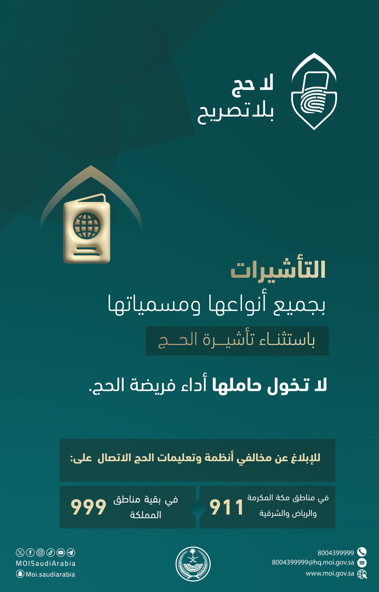 نشر موقع وزارة الداخلية على شبكة “أكس” @MOISaudiArabia خبرًا يؤكد أن جميع أنواع التأشيرات، باستثناء تأشيرة الحج، لا تمنح حاملها الحق في أداء فريضة الحج.