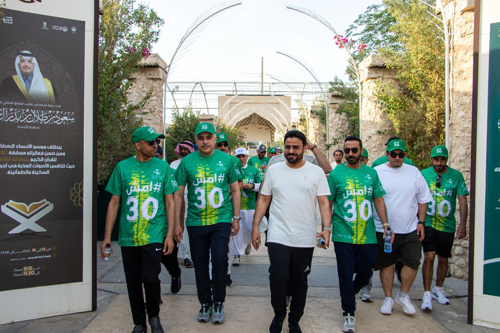 برعاية صاحب السمو الملكي الأمير سعود بن طلال بن بدر محافظ الأحساء، دشّن سعادة وكيل محافظة الأحساء الأستاذ معاذ بن إبراهيم الجعفري مساء اليوم “السبت” بممشى أمانة الأحساء ، النسخة الخامسة من مبادرة “امشِ 30” ، بحضور مدير فرع وزارة الصحة بمحافظة الأحساء الدكتور إبراهيم بن محمد الحجي وعدداً من المسؤولين بالمحافظة، تزامناً مع إطلاق وزارة الصحة الحملة على مستوى مناطق ومحافظات المملكة ، وذلك في إطار الجهود المستمرة لتحقيق مستهدفات رؤية المملكة 2030 في تعزيز الصحة العامة ونمط الحياة الصحي.