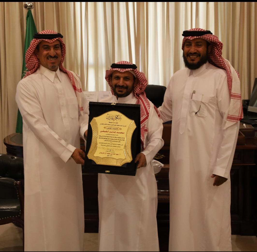 كرم سعادة محافظ محافظة خميس مشيط الأستاذ خالد بن عبدالعزيز بن مشيط في مكتبه يوم الاثنين ٣٠ شوال لعام ١٤٤٦ للهجرة الأستاذ محمد بن جابر الفيفي رائد للنشاط الطلابي والجودة بمتوسطة اوس بن حبيب بتعليم جنوب خميس مشيط بمناسبة إقامة برنامج التميز السلوكي للعام الدراسي ١٤٤٦ للهجرة