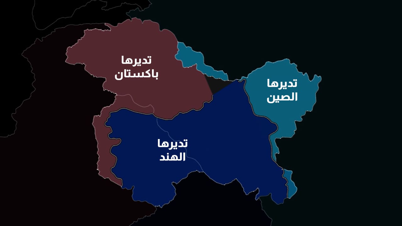 كشمير منطقةٌ تطالب بها كلٌّ من باكستان والهند، بينما تسيطر الصين على منطقة منها في الشرق. هذه الحدود الفعلية يشرف عليها كلا الجانبين.