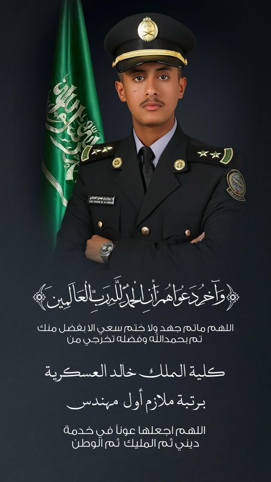 حصل المهندس ريان مهدي القحطاني على رتبة ملازم أول مهندس ، من كلية الملك خالد العسكرية.