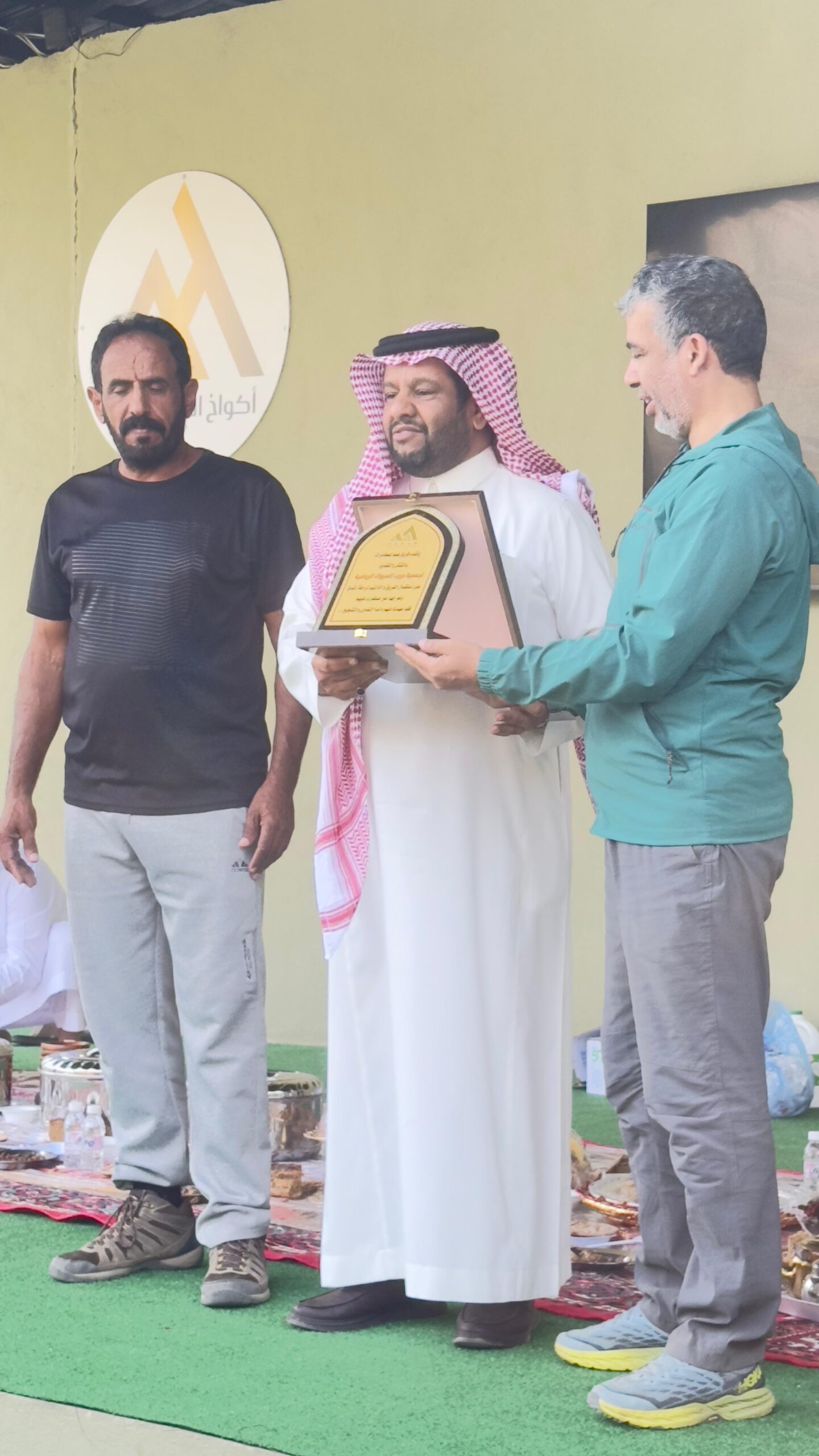 والكابتن محمد بن صالح الدهري رئيس جمعية دروب السروات الرياضيه بدروع تذكارية من الكابتن سلطان الاحمدي قائد فريق همم للمغامرات بعدها غادر الفريق بكل حفاوة وتقدير .
