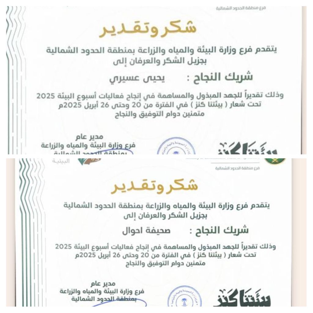 جاء هذا التكريم في خطوة من إدارة فرع الوزارة بالحدود الشمالية لتعزيز التعاون مع المؤسسات الإعلامية التي تسهم في نشر الوعي حول أهمية دعم وتطوير البيئة.
