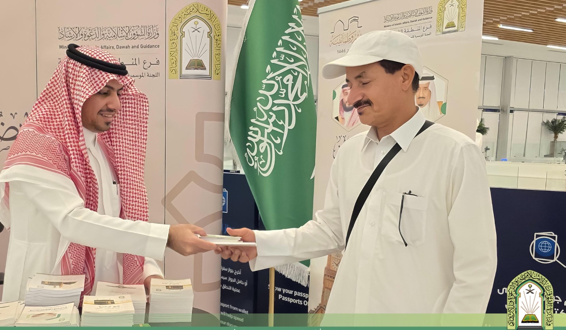 ضمن خطتها التوعوية لموسم حج 1446هـ، كثفت وزارة الشؤون الإسلامية والدعوة والإرشاد، ممثلة بفرعها في منطقة مكة المكرمة، أعمالها في توزيع المواد التوعوية والإرشادية على الحجاج القادمين عبر مطار الملك عبدالعزيز الدولي وميناء جدة الإسلامي، في إطار جهودها المستمرة لتيسير أداء المناسك على الوجه الشرعي الصحيح.