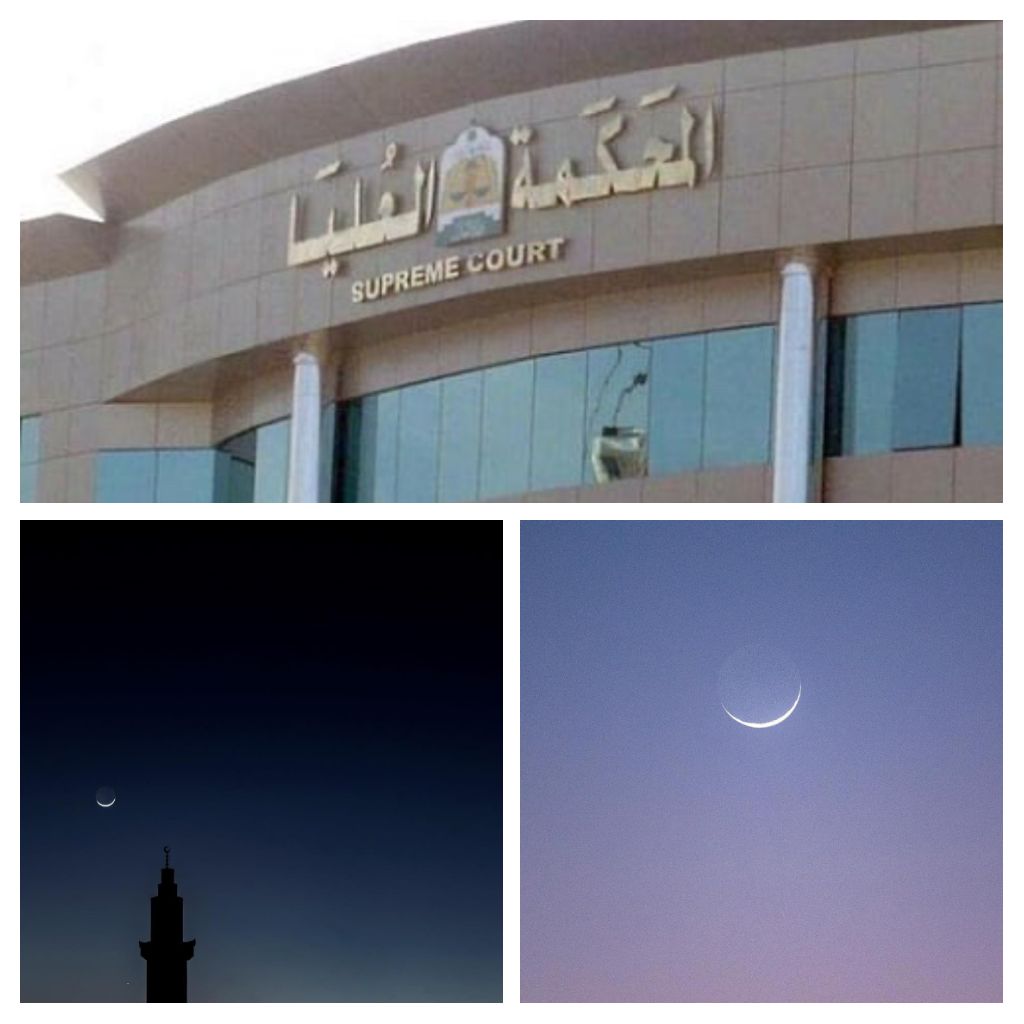 الحمد لله وحده، وصلى الله وسلم على نبينا محمد وعلى آله وصحبه أجمعين، وبعد: فقد عقدت دائرة الأهلة في المحكمة العليا جلسةً مساء هذا اليوم الثلاثاء التاسع والعشرين من شهر ذي القعدة لعام 1446هـ -حسب تقويم أم القرى- الموافق 27 / 5 / 2025م؛ للنظر فيما يردها حول ترائي هلال شهر ذي الحجة لهذا العام 1446هـ، وبعد الاطلاع على جميع ما وردها والنظر فيه وتأمله، ونظرًا لما تضمنه قرار المحكمة العليا رقم (194/ هـ) وتاريخ 29 / 10 / 1446هـ أن يوم الثلاثاء 1 / 11 / 1446هـ ــ حسب تقويم أم القرى ــ الموافق 29 / 4 / 2025م هو غرة شهر ذي القعدة لهذا العام 1446هـ، ولأنه قد شهِدَ عدد من الشهود العدول برؤية هلال شهر ذي الحجة هذه الليلة؛ فإن الدائرة تقرر أن يوم غدٍ الأربعاء 1 / 12 / 1446هـ -حسب تقويم أم القرى- الموافق للثامن والعشرين من شهر مايو أيار 2025م، هو غرة شهر ذي الحجة لعام 1446هـ، والوقوف بعرفة يوم الخميس 9 / 12 / 1446هـ -حسب تقويم أم القرى- الموافق للخامس من شهر يونية ــ حزيران، وعيد الأضحى المبارك يوم الجمعة الذي يليه.