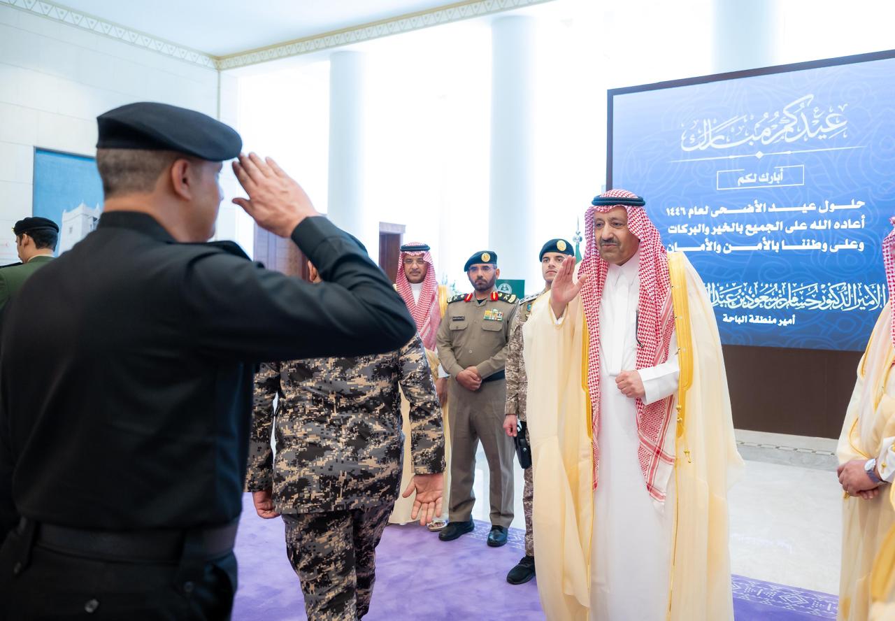استقبل صاحب السمو الملكي الأمير الدكتور حسام بن سعود بن عبدالعزيز، أمير منطقة الباحة، صباح اليوم بمقر الإمارة، جموع المهنئين من أصحاب المعالي، والسعادة، والفضيلة، ومشايخ القبائل، ومديري الإدارات الحكومية من مدنيين وعسكريين، ووكلاء ومدراء عموم الإمارة، الذين قدِموا لتقديم التهاني لسموه بمناسبة عيد الأضحى المبارك.